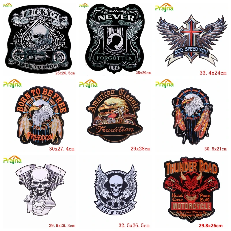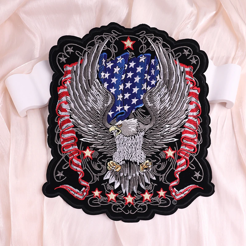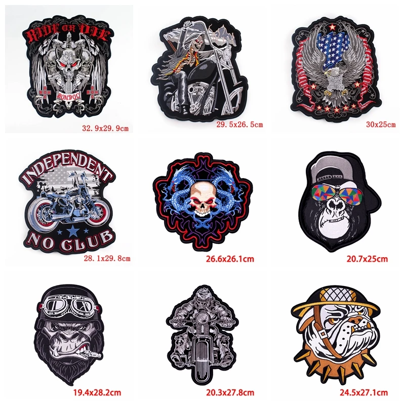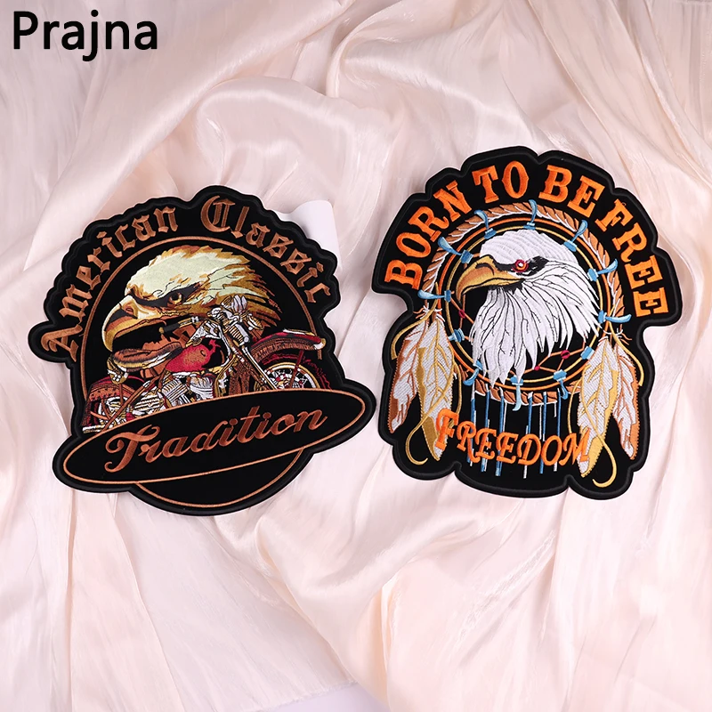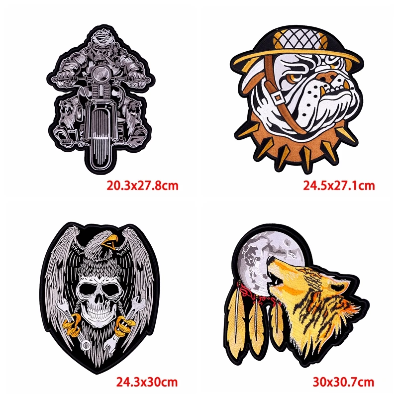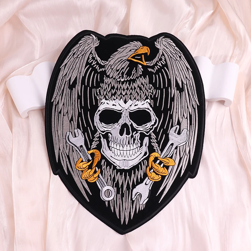 Chaquetas de cuero de águila de motorista de motocicleta, parche bordado de costura trasera grande, parches de planchado, parches Punk de calavera/Animal para ropa