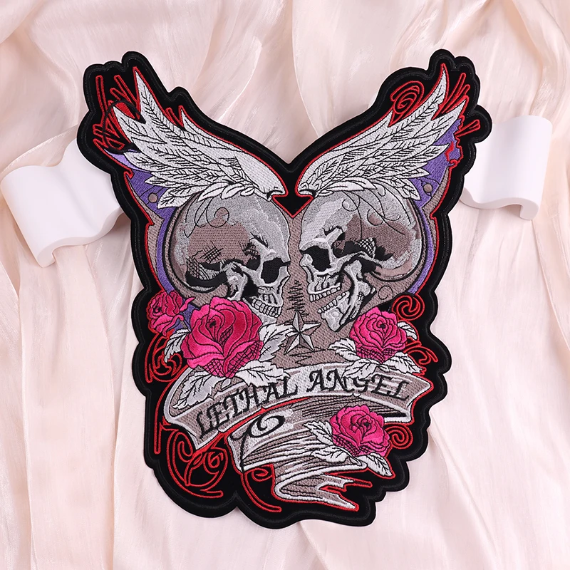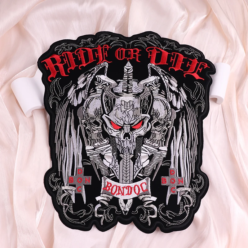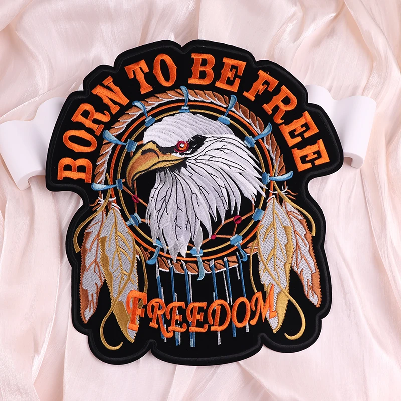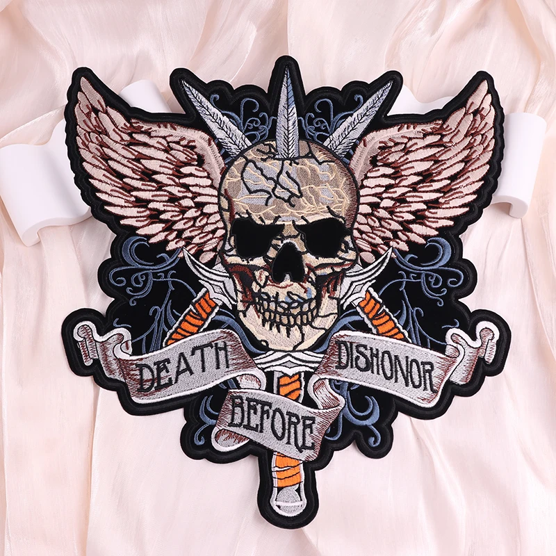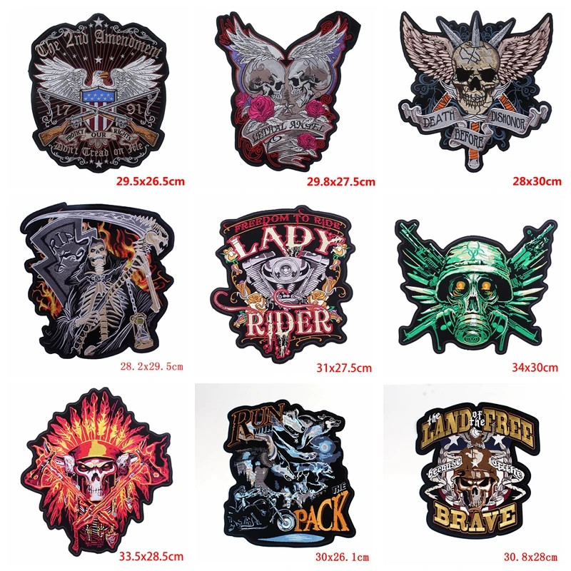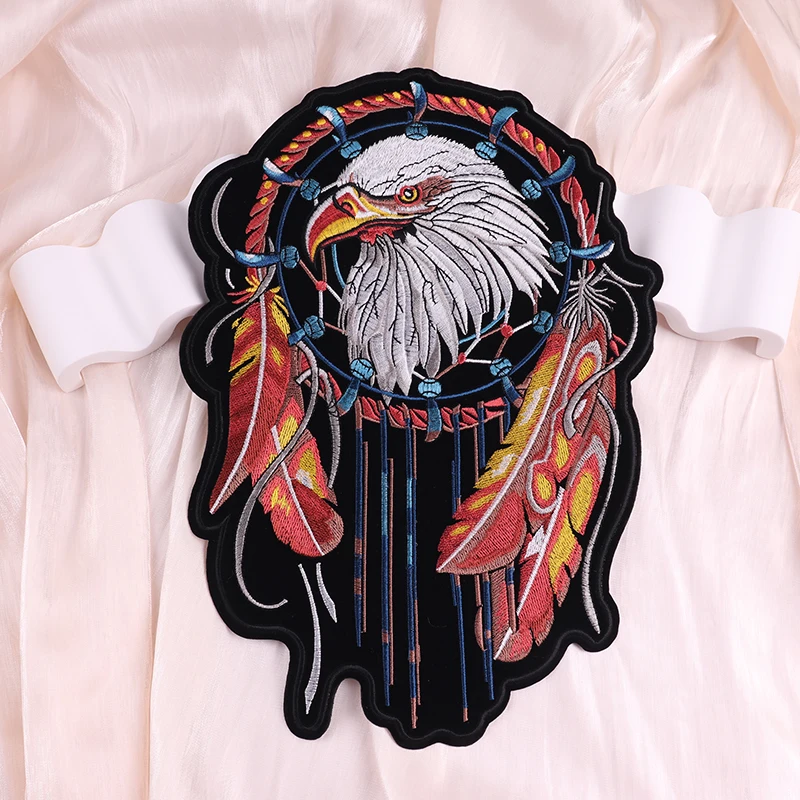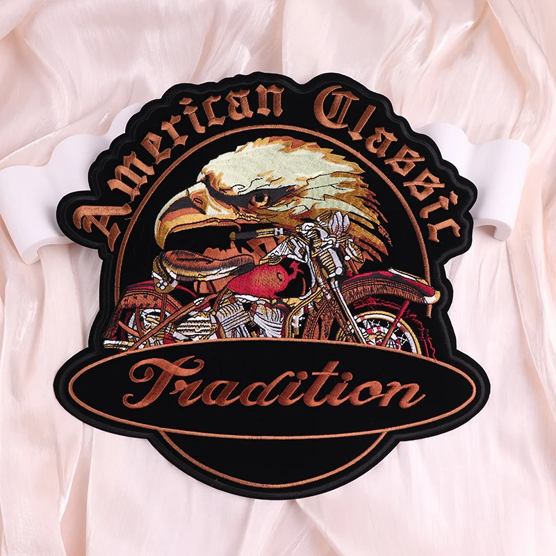 Chaquetas de cuero de águila de motorista de motocicleta, parche bordado de costura trasera grande, parches de planchado, parches Punk de calavera/Animal para ropa