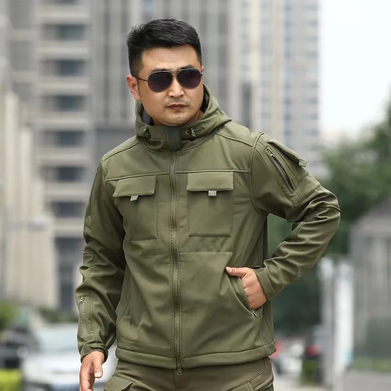 Hombres 3XL grande impermeable ejército militar Stand Collar táctico SharkSkin Softshell chaquetas al aire libre Fish Climb caza senderismo Camping