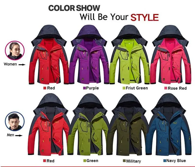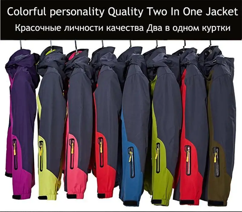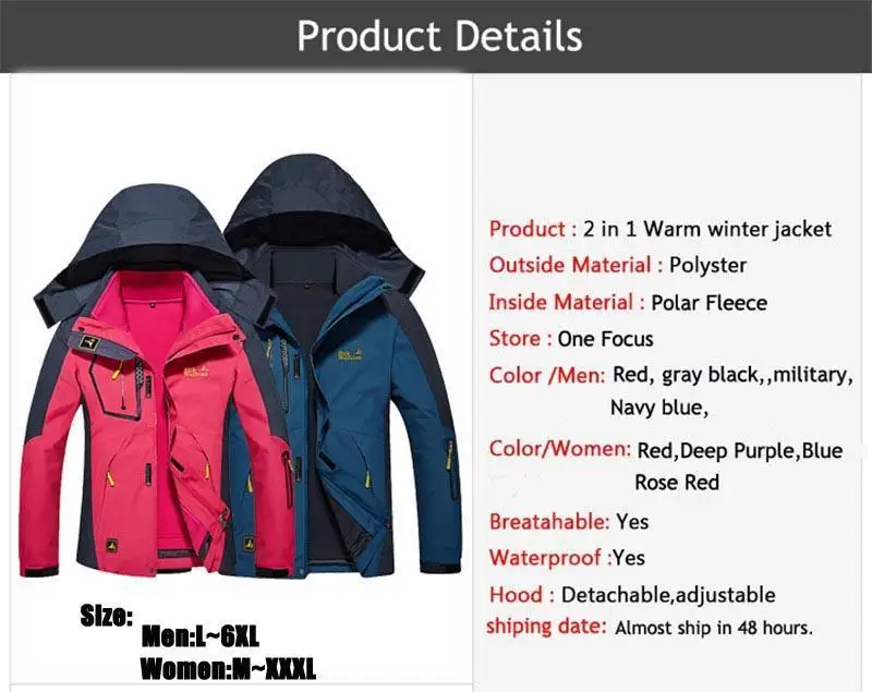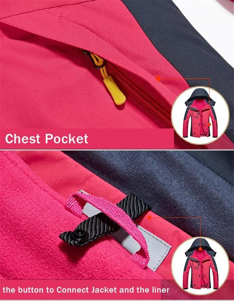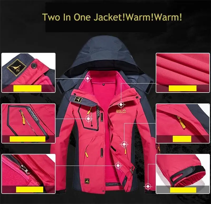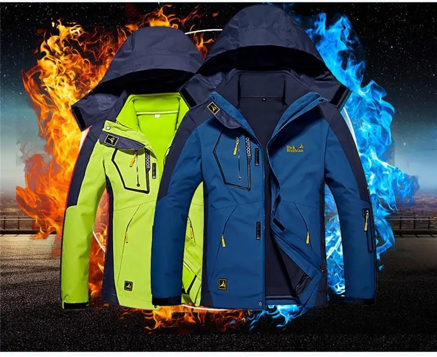 Men's Outdoor Waterproof Windproof Jackets Camping Climbing Thicken 2 In 1 Autumn Winter Hiking Male Trekking Skiing Warm Coats