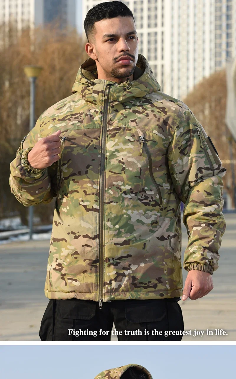 Chaquetas de invierno, Chaqueta táctica de algodón para hombre, ropa cálida a prueba de viento, abrigo de camuflaje para hombre, ropa gruesa para senderismo y acampada