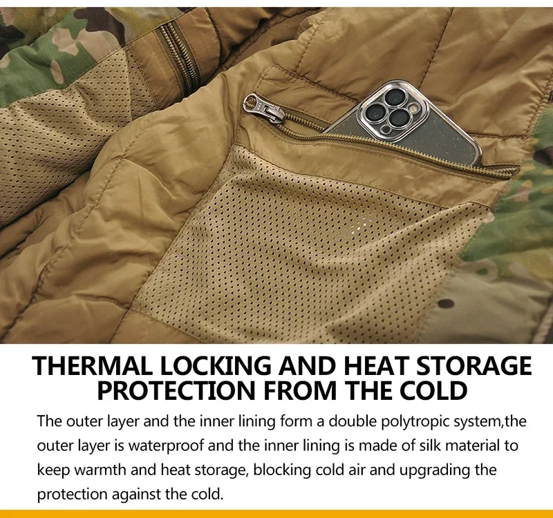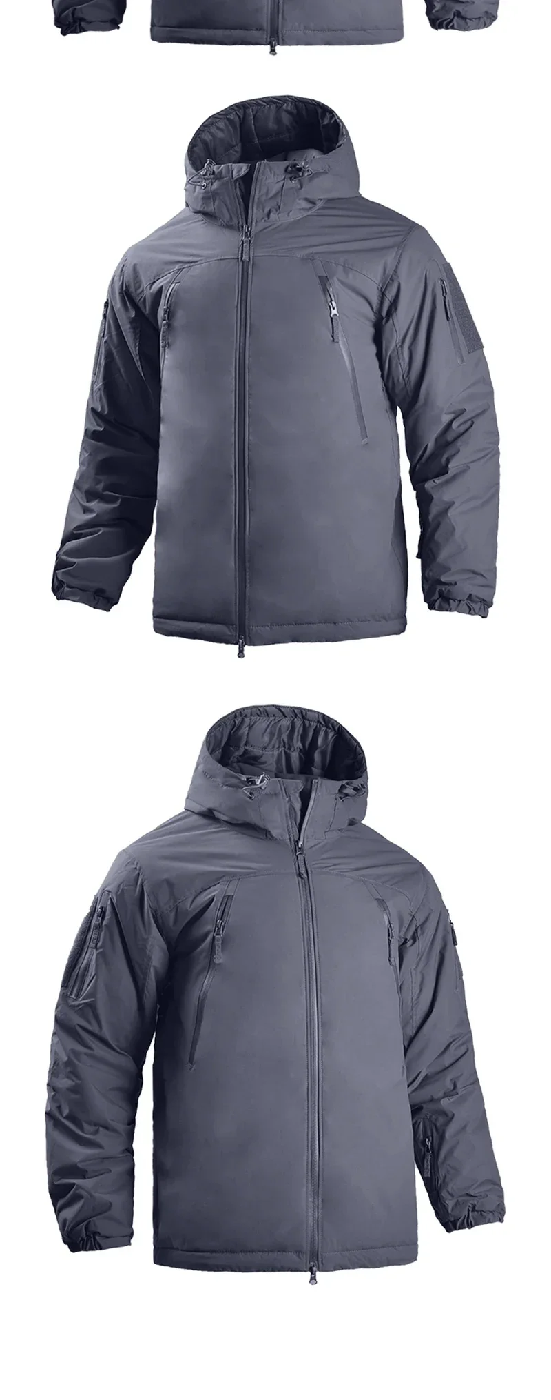 Material:Poliéster con lana de seda Característica: 1.Material de seda interior mejorado para calidez, almacenamiento de calor y resistencia al frío. 2.La capa exterior está hecha de material de fibra de poliéster, que es impermeable y fácil de hacer frente a la lluvia ligera al aire libre. 3.Diseño de cordón de sombrero ajustable para resistencia al viento y al frío. 4.Diseño de múltiples bolsillos para una carga mejorada.