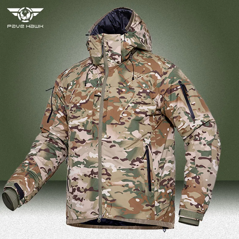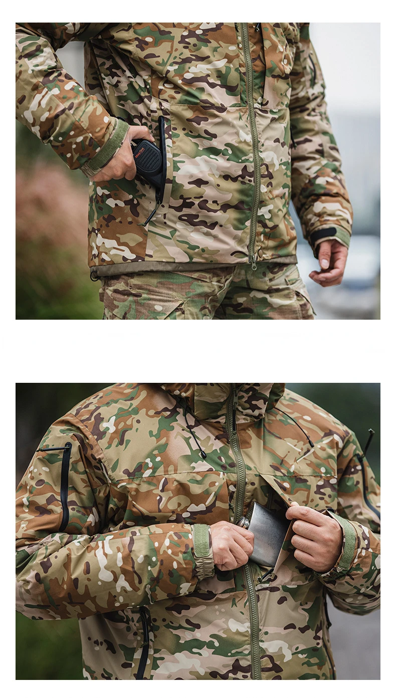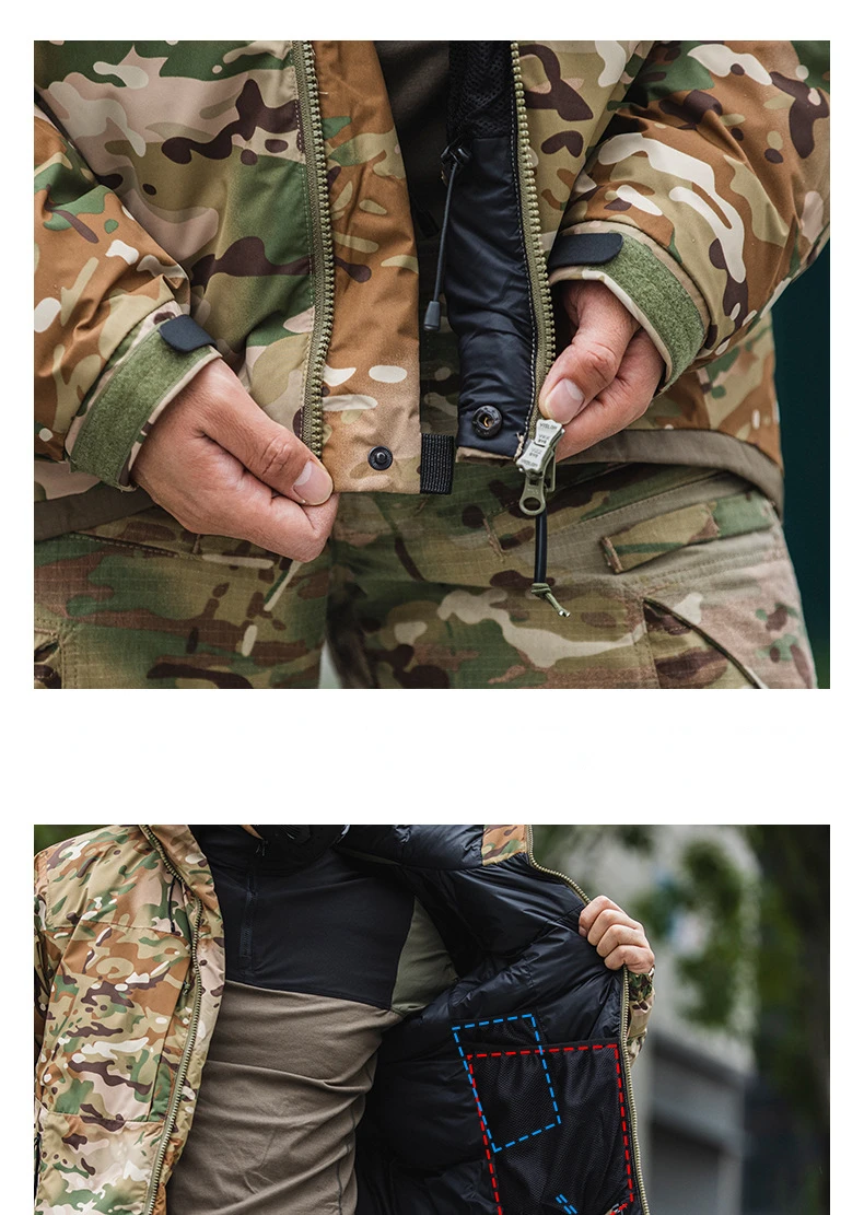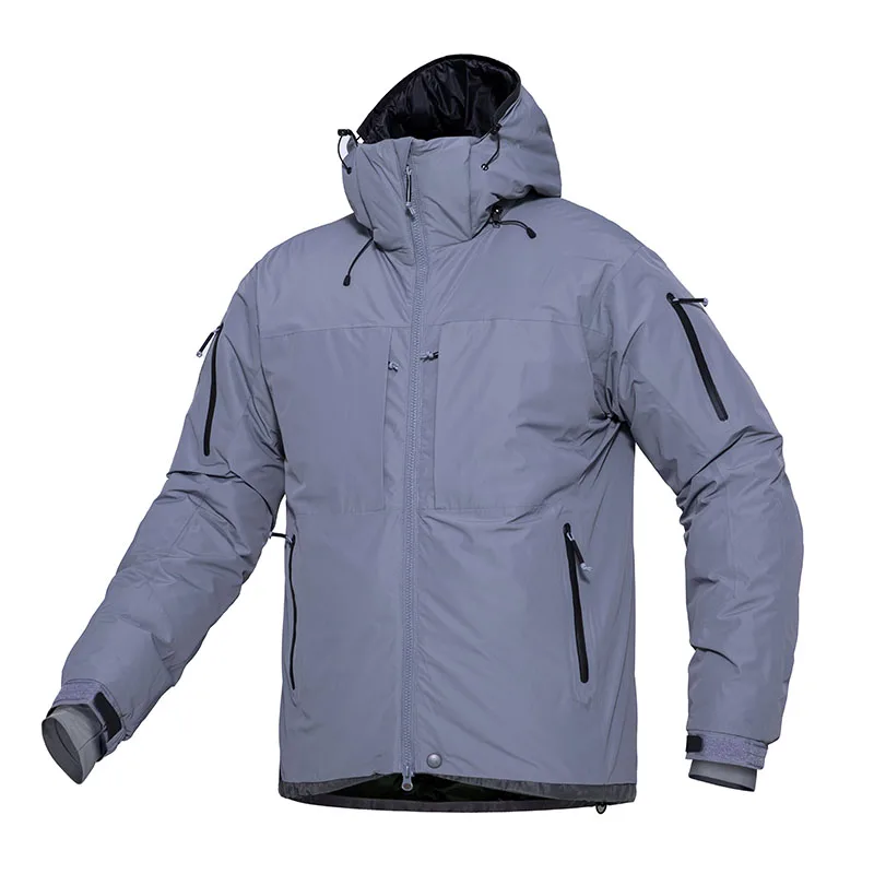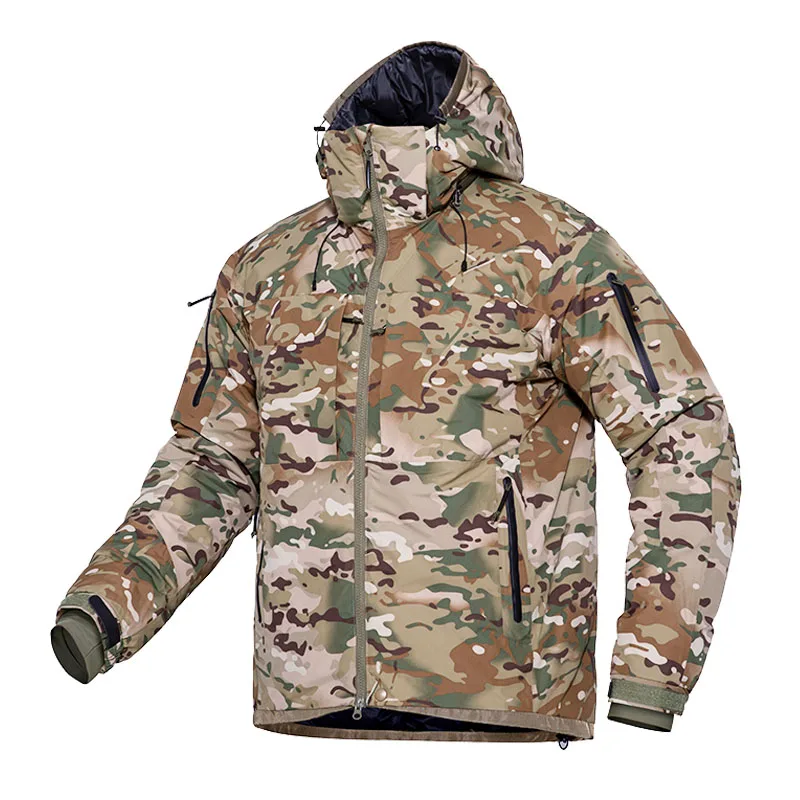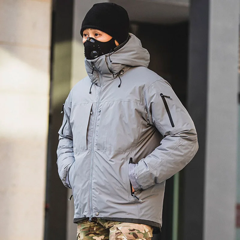 Chaquetas de plumón tácticas de camuflaje para hombre, abrigos militares cálidos impermeables con múltiples bolsillos, acolchados, con capucha del ejército al aire libre, 90% gris