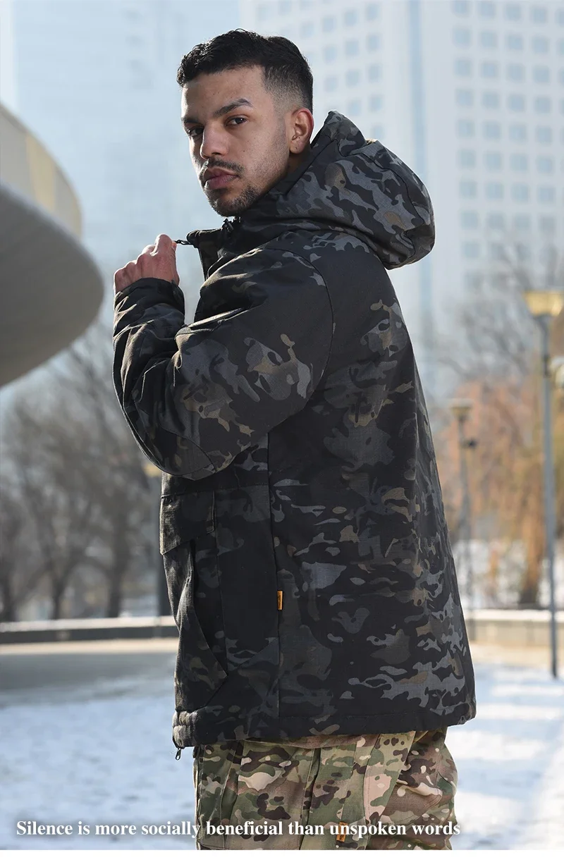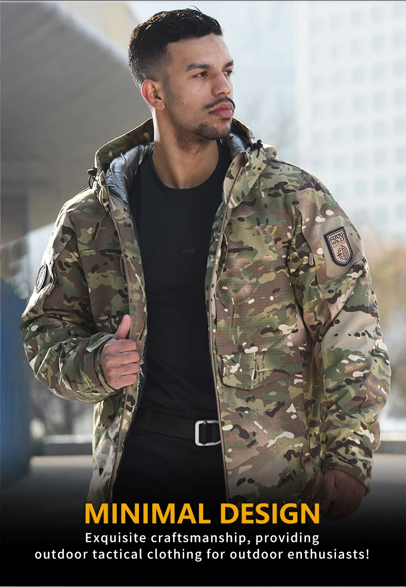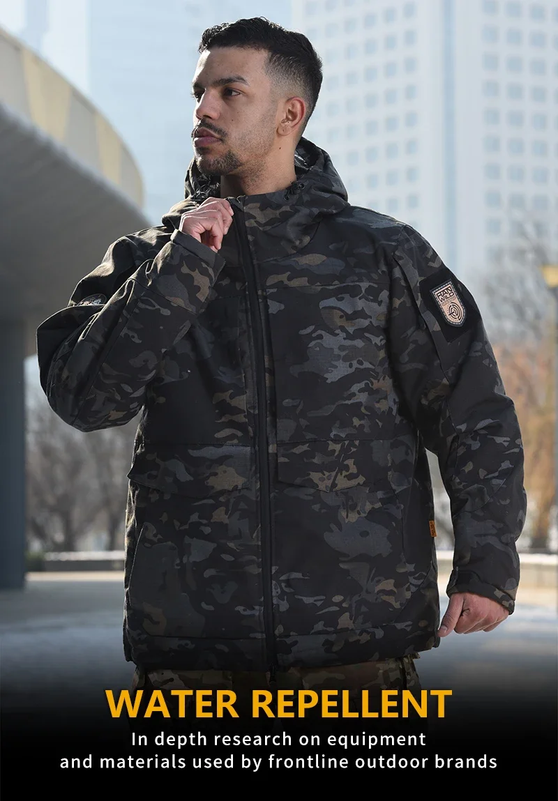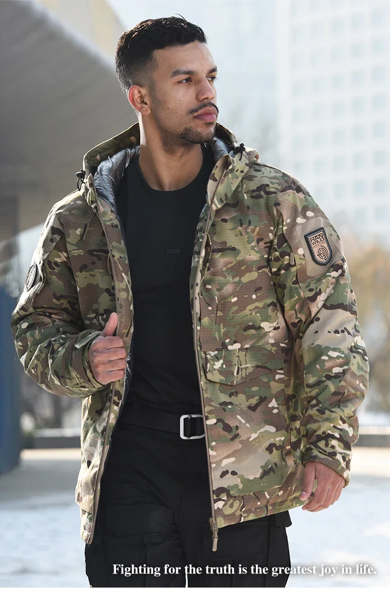 Chaquetas reflectantes de calor para invierno, cortavientos térmico, chaqueta táctica, abrigo de invierno con capucha para hombre, chaqueta de senderismo, Parka de combate, calidez