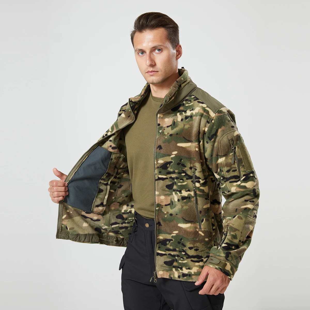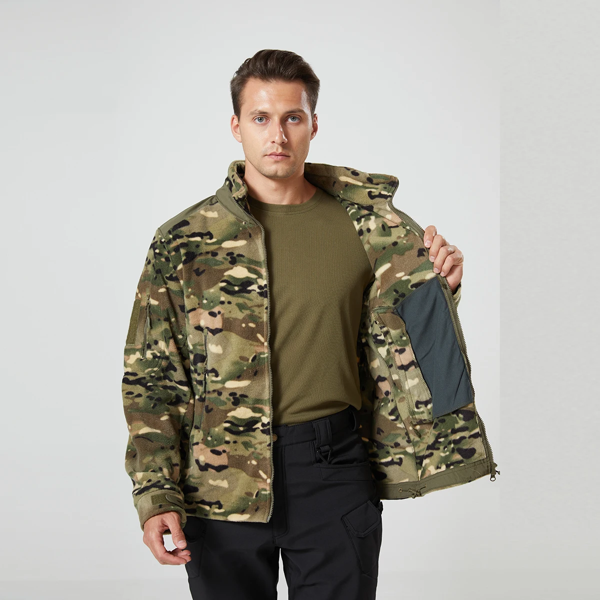 Chaqueta táctica de lana cálida para hombre, chaquetas de camuflaje US CPArmy, chaqueta cortavientos para trabajo al aire libre, senderismo, abrigo con capucha, prendas de vestir con bolsillo y cremallera