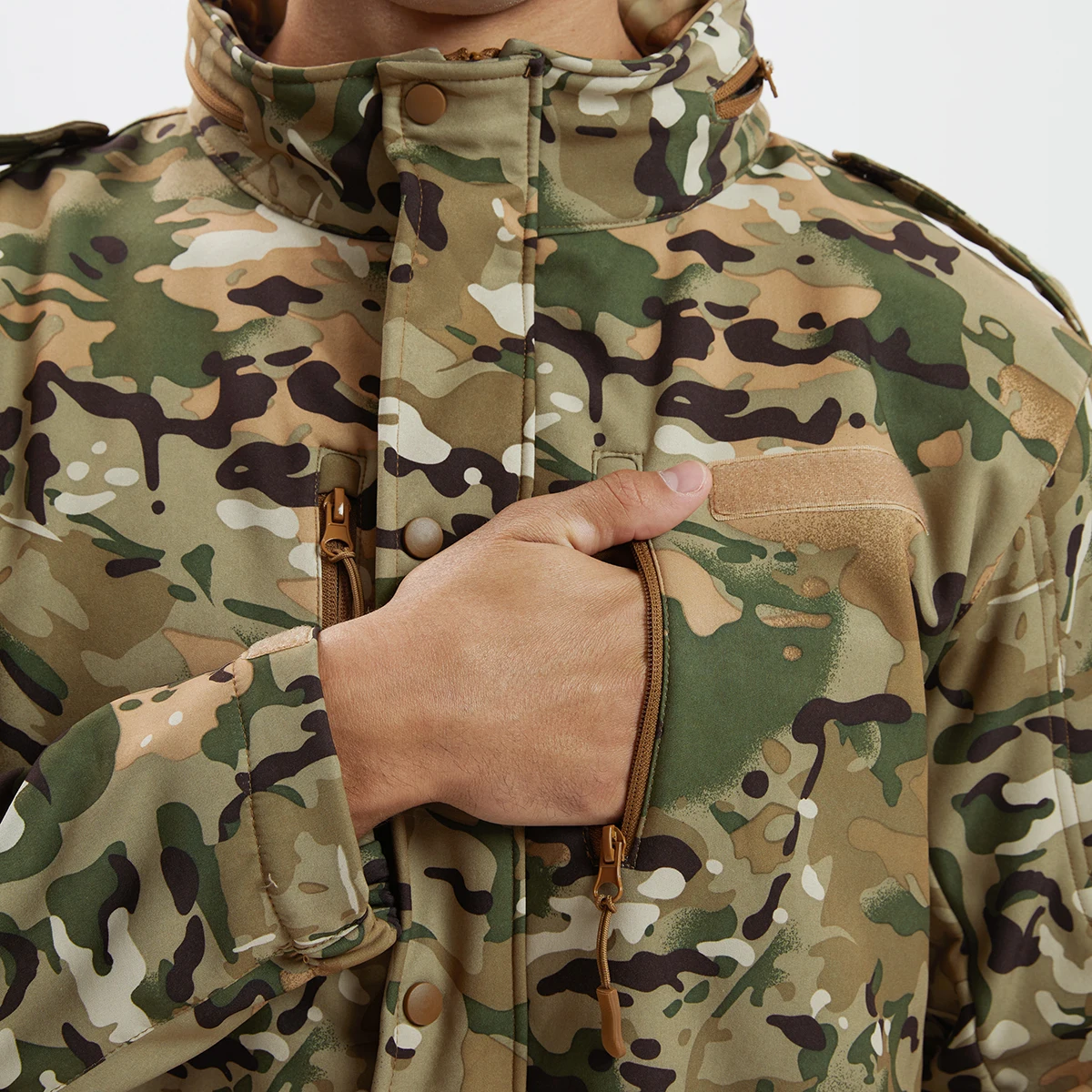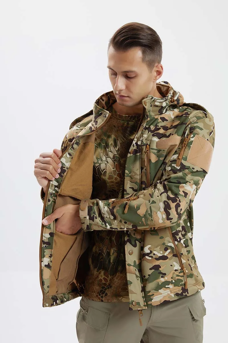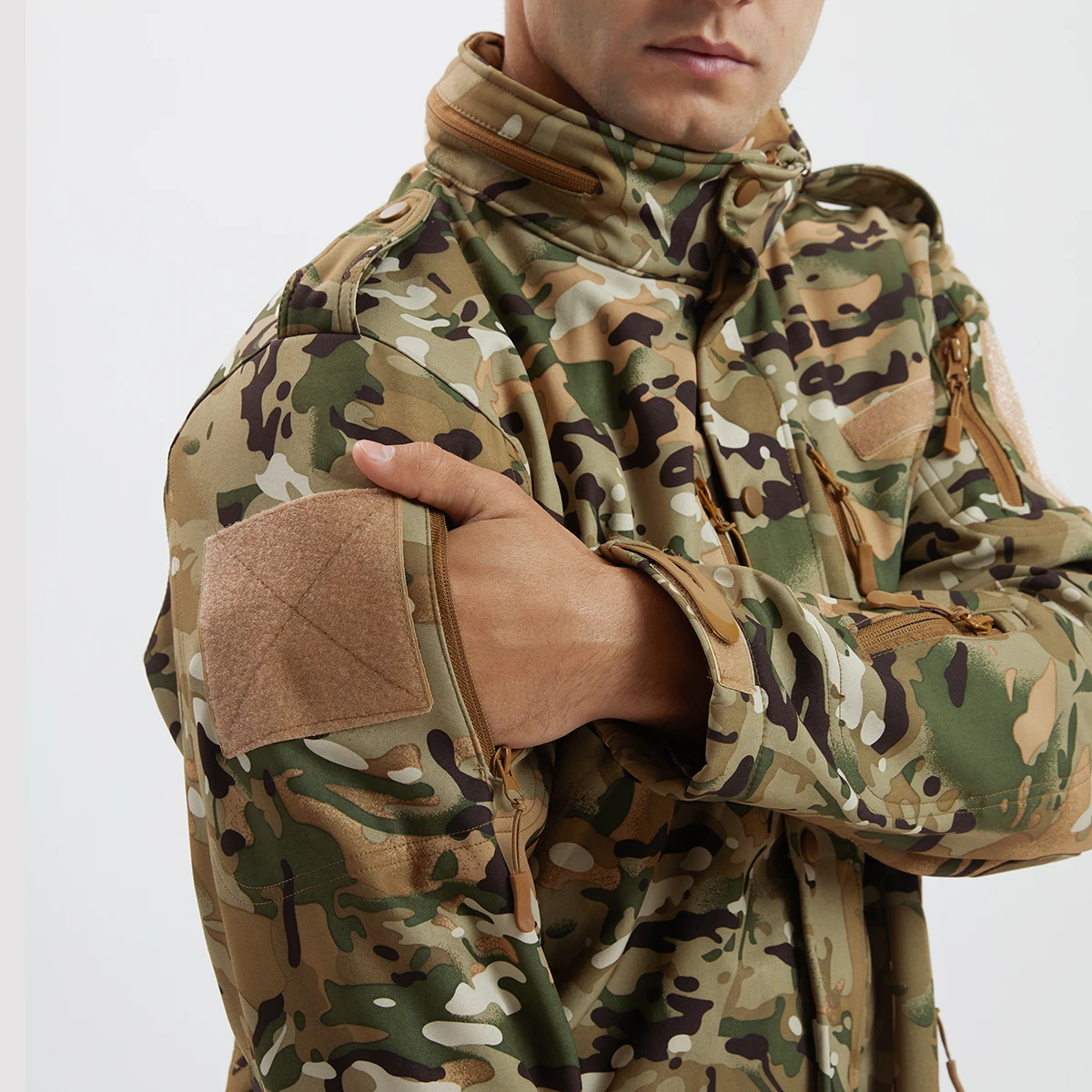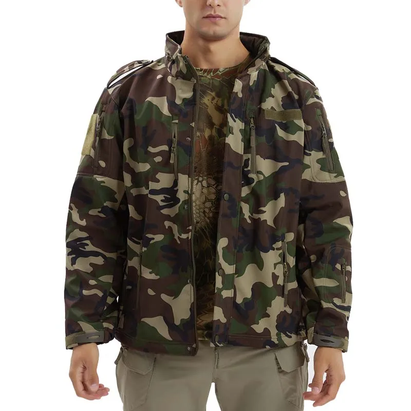 Chaquetas tácticas de camuflaje de concha suave para hombre, abrigo polar impermeable con capucha, chaqueta para exteriores, ropa de caza al aire libre