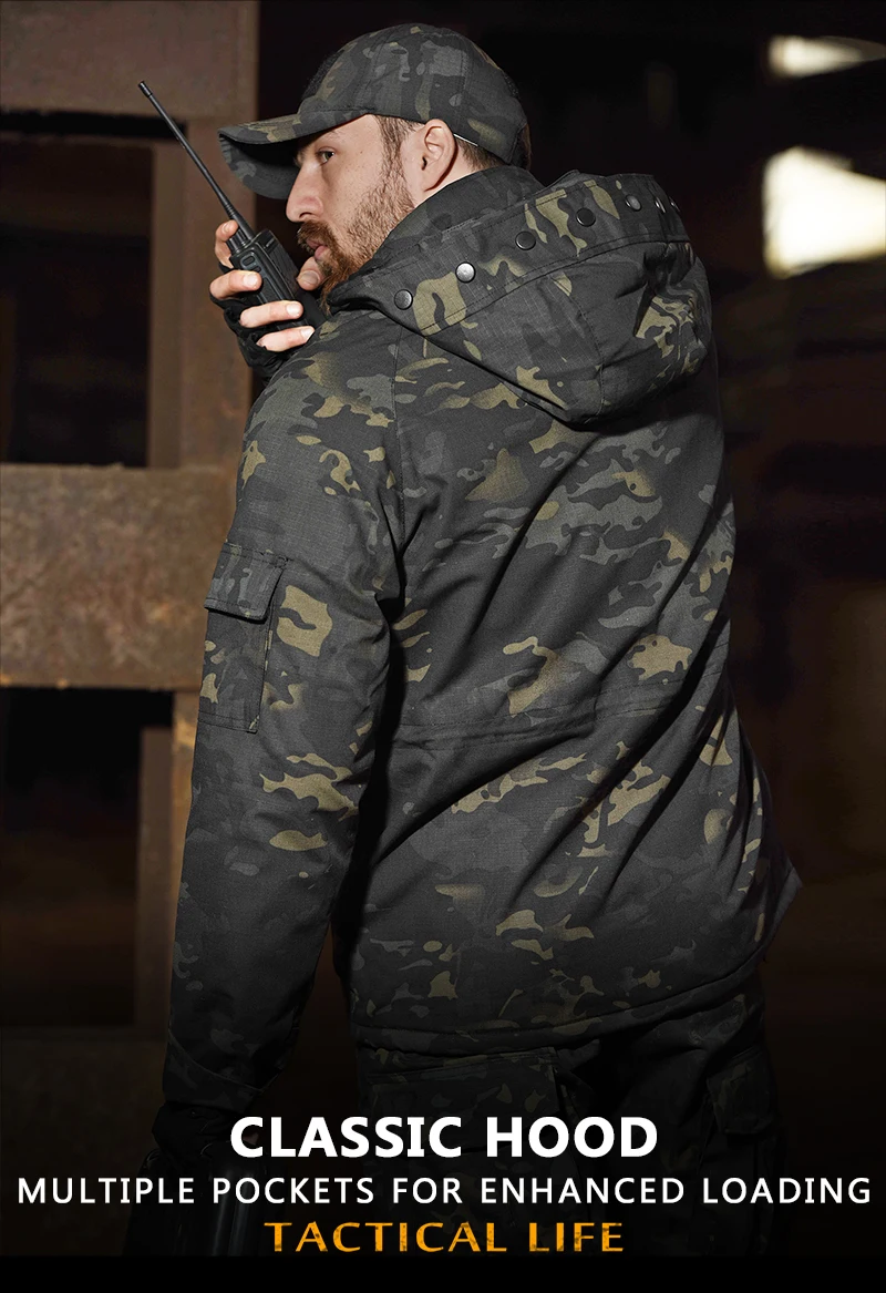 -21 °F Chaquetas tácticas militares Hombre Cortavientos impermeable Chaquetas de caza Camping Senderismo Abrigo de algodón Región polar Chaqueta de hombre