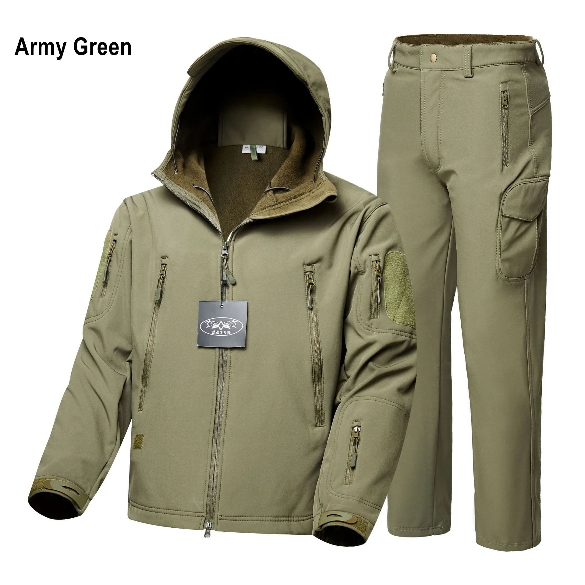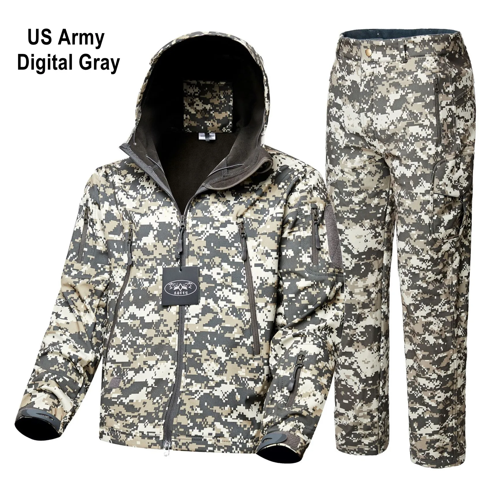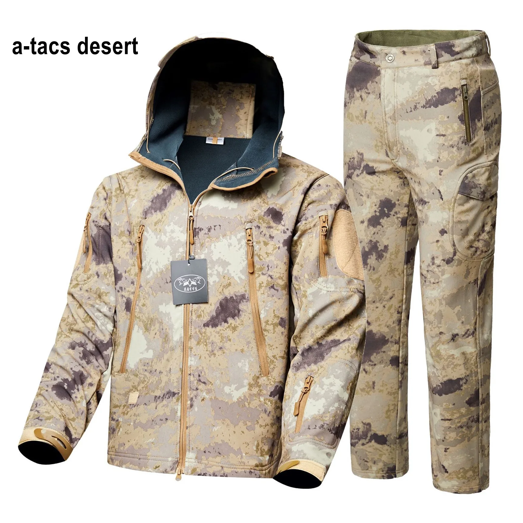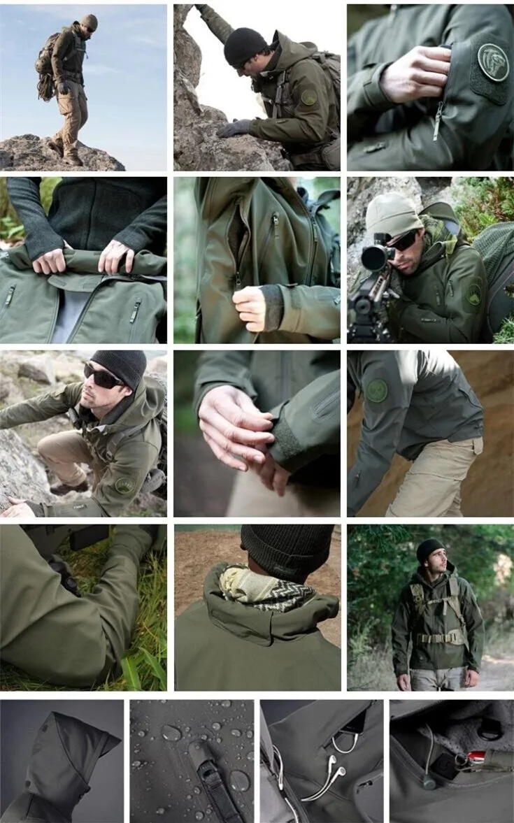 1. Artículos: chaqueta de lana, traje de caza de camuflaje a prueba de viento del ejército, ropa de concha suave para senderismo al aire libre