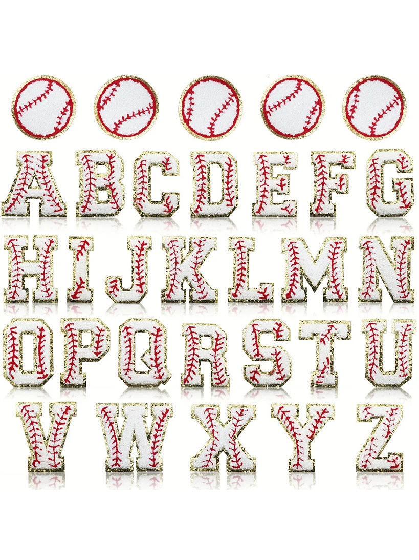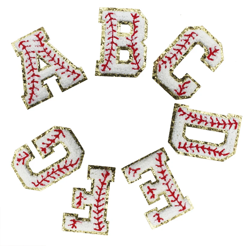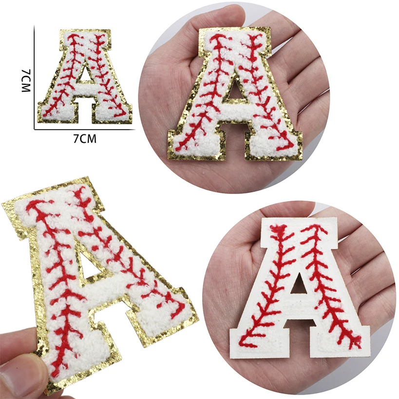 Chenille patrón bordado alfabeto y números parches de letras, apliques de béisbol de, ropa de bricolaje, chaqueta de hierro en accesorios