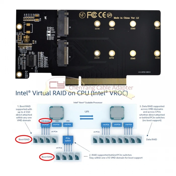 2X NVME M.2 AHCI a PCIE Express 3,0 Gen3 X8 X16 Tarjeta Raid VROC Raid0 Hyper Adapter