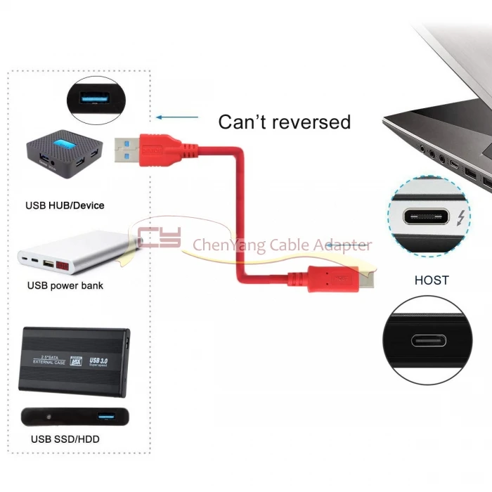 No puede ser Reversible desde el host de un dispositivo a otro a través de un dispositivo de USB-C.