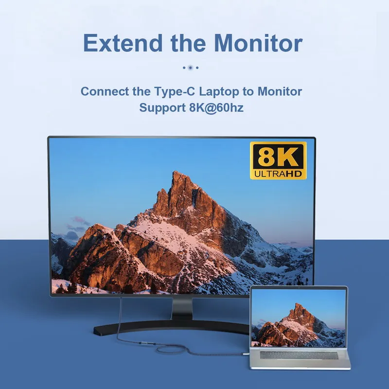 Este cable USB4 permite conectarse desde sus dispositivos equipados con puertos USB4 o thunderbolt3/4 a sus monitores de la red de monitoreo,