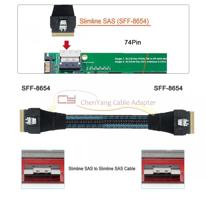 PCI-E Slim Line SAS 4,0 SFF-8654 8i 74pin Host a cable de destino SAS delgado de 50cm