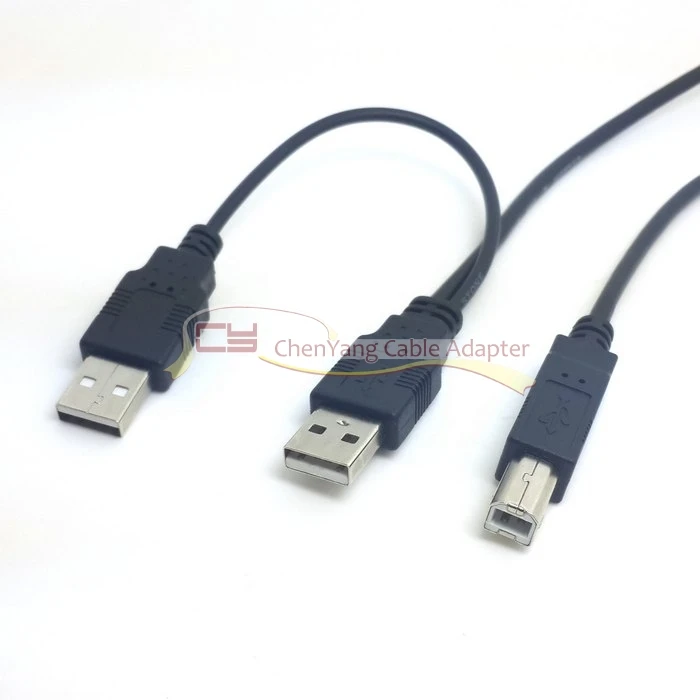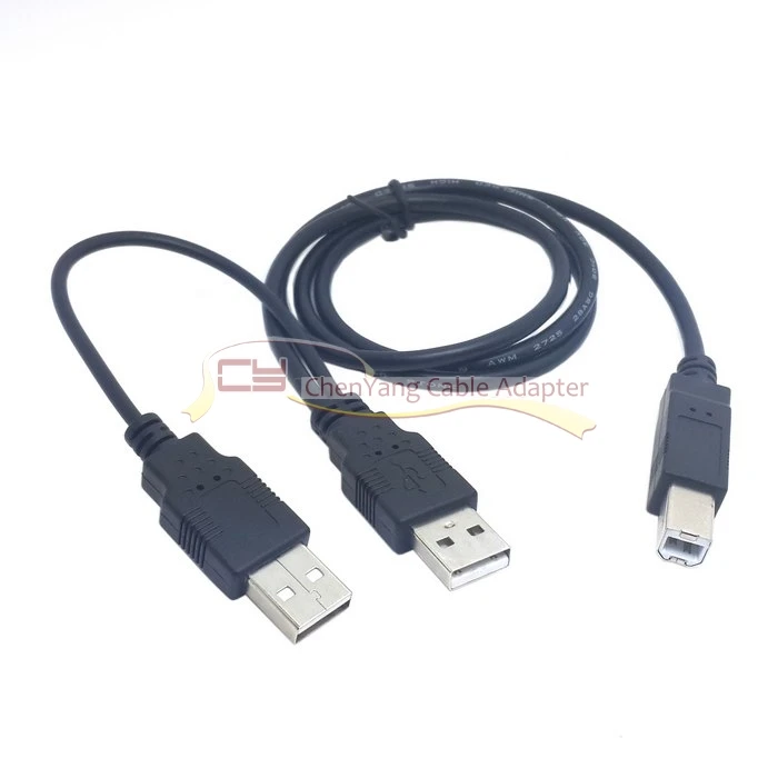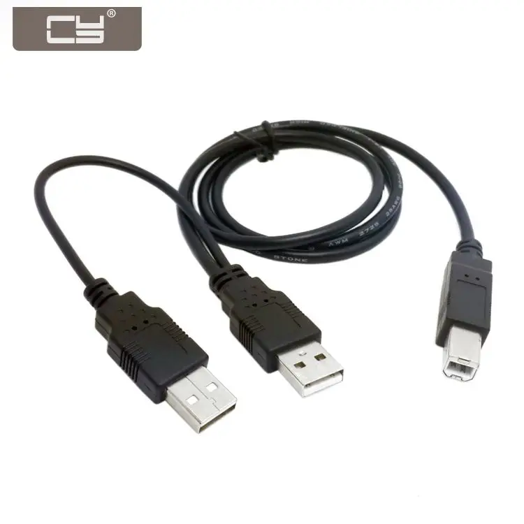 Dual USB 2,0 macho a estándar B macho Y Cable 80cm para impresora, escáner y disco duro externo