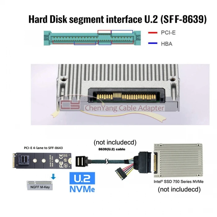 Kit 2280 U.2 Adaptador NVME PCIe SSD para placa base SSD 750 p3600 p3700 M.2, Mini SAS HD, de 1 a 2 pulgadas