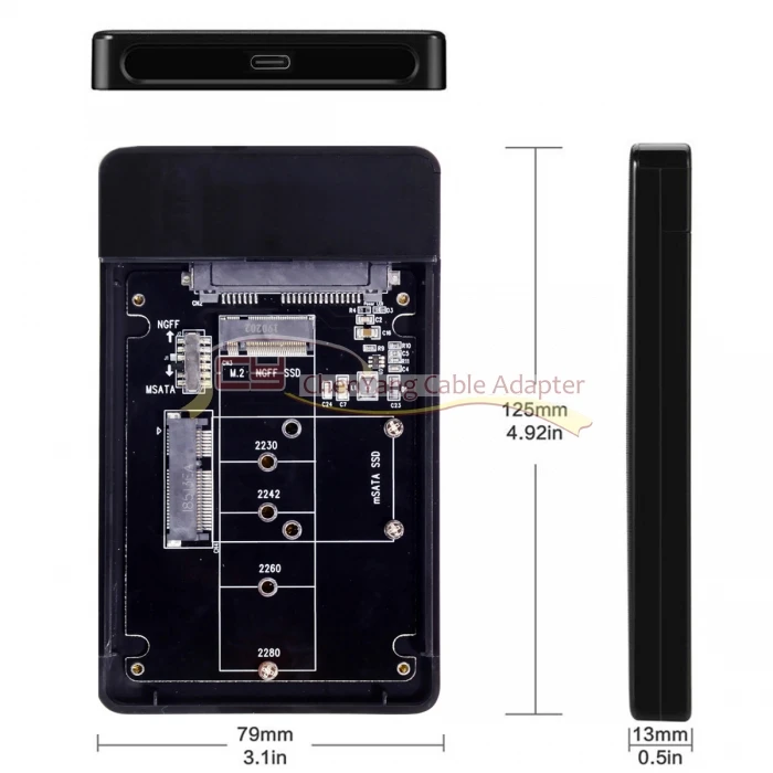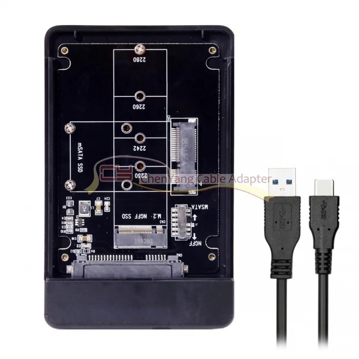 Combo M.2 NGFF B-key y mSATA SSD a USB Tipo-C Caja convertidora con interruptor