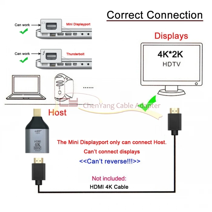 Mini DisplayPort DP Source a HDMI Sink Displays 4K @ 60Hz Ultra HD Converter Adapter para Laptop Mac