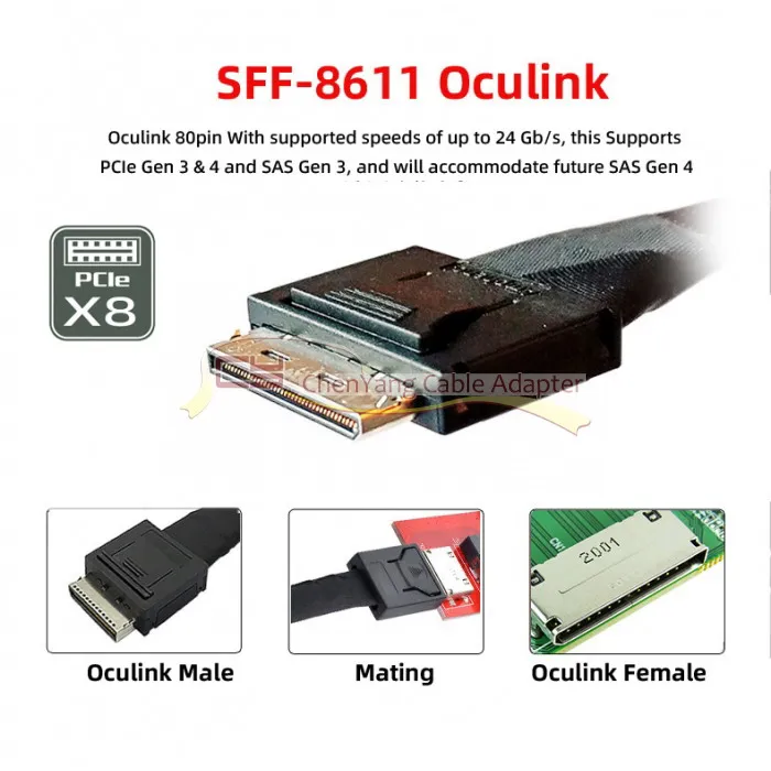 OCuLink: 8x 80pin macho a 8x 80pin macho a OCuLink, 8x 80pin macho