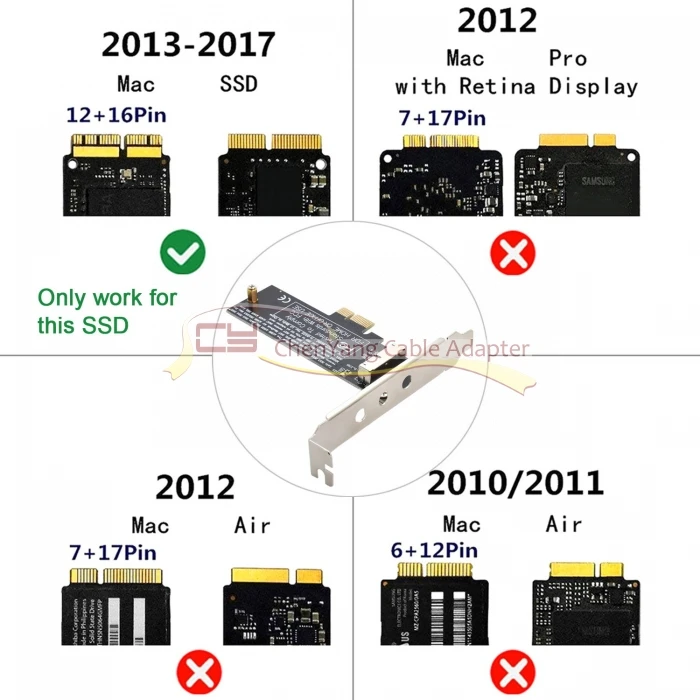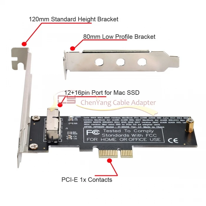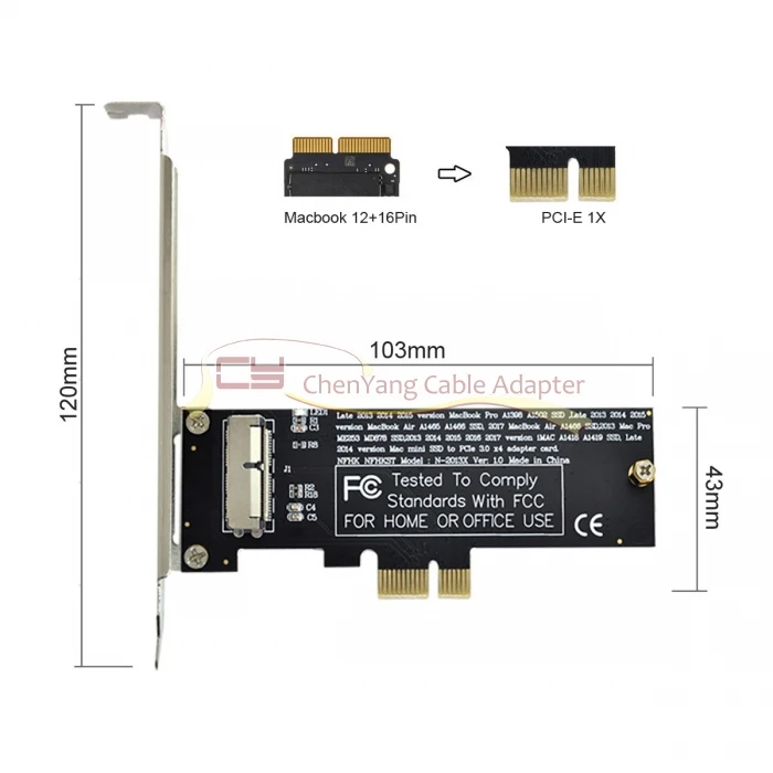 Tarjeta de conversión PCI Express PCI-E 1X a 12 + 16 pines 2013-2017 Mac Pro Air SSD para A1493 A1502 A1465 A1466