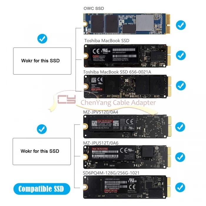 El SSD debe tener contactos de 16 + 12 pines. (Ver foto de abajo, de lo contrario no puede funcionar)