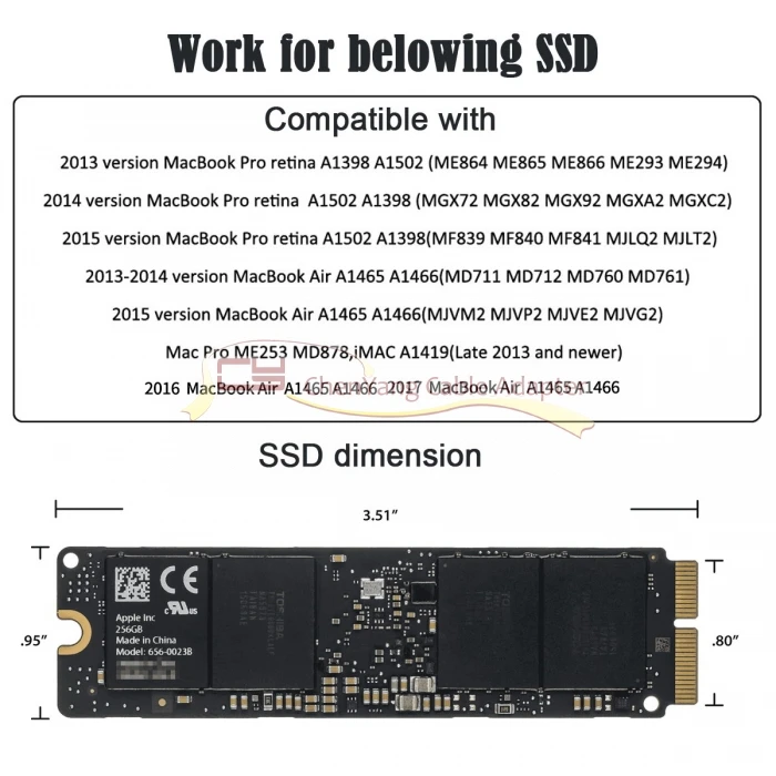 2015 MacBook Air A1465 A1466 (MJVM2 MJVP2 MJVE2 MJVG2) y Mac Pro ME253 MD878 SSD.