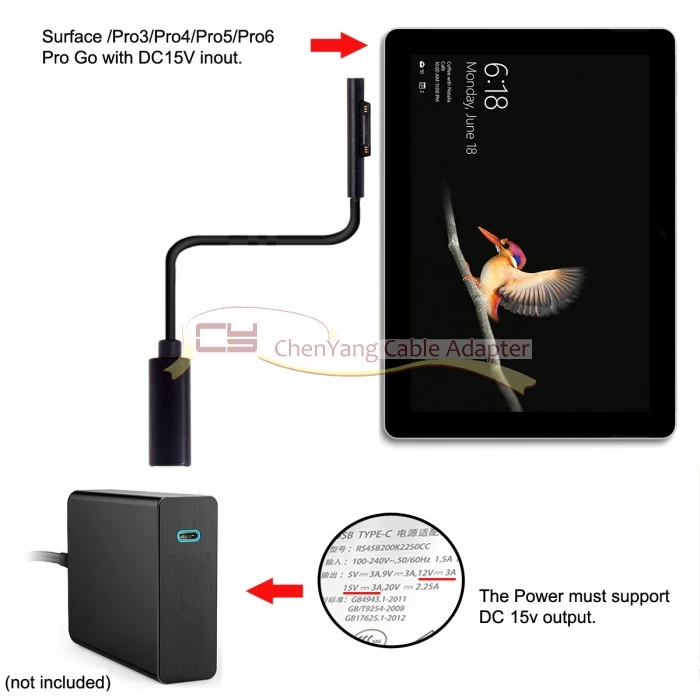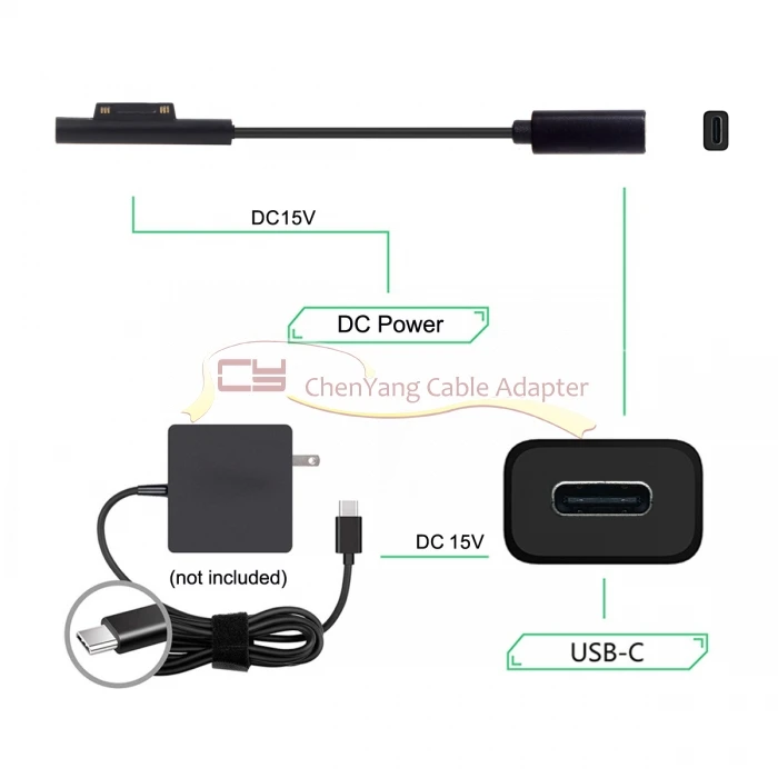Cable de carga DC 15V Tipo-C Hembra a Surface Pro3 Pro4 Pro5 Pro6 Book Pro