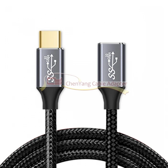 Cable de datos de extensión macho a hembra USB 3,1 100 tipo C de 10Gbps W con funda para teléfono portátil