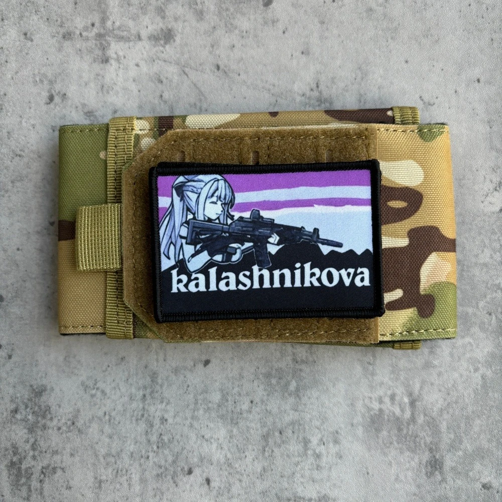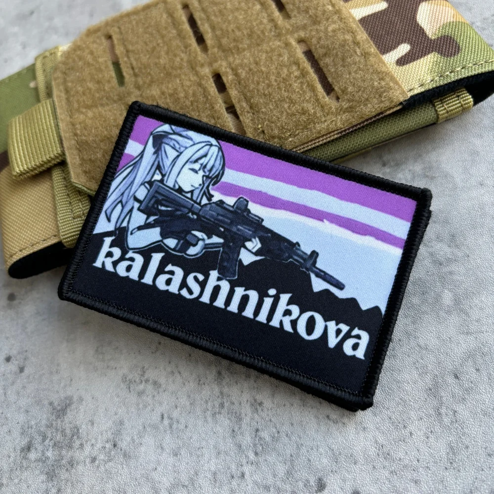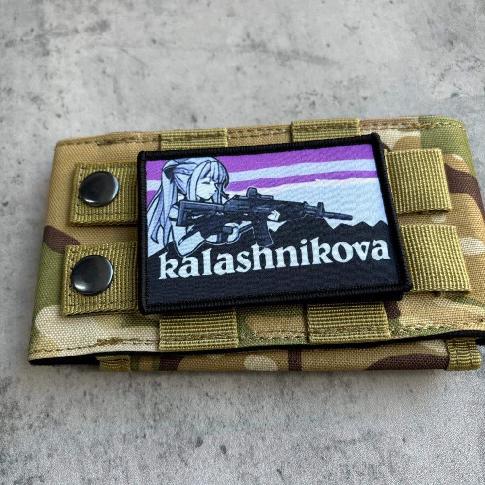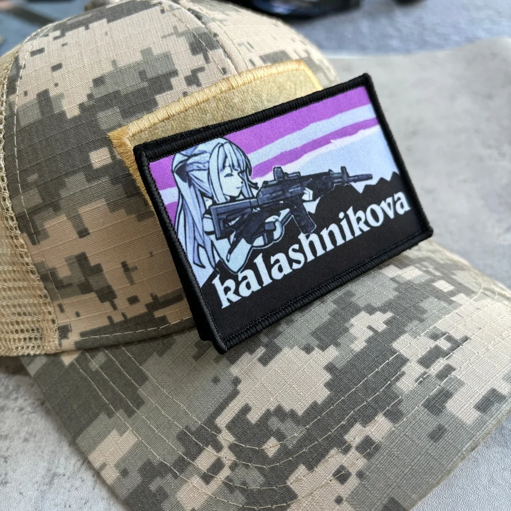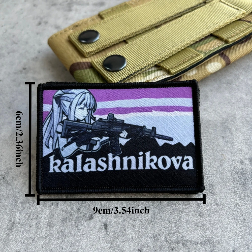 Anime chica Kalashnikova parche táctico gancho y bucle Meme parches pistola chica Moral brazalete militar ejército Morale insignia mochila pegatinas1.Debido a las diferentes resoluciones de los dispositivos electrónicos, el color puede ser ligeramente diferente al color real.