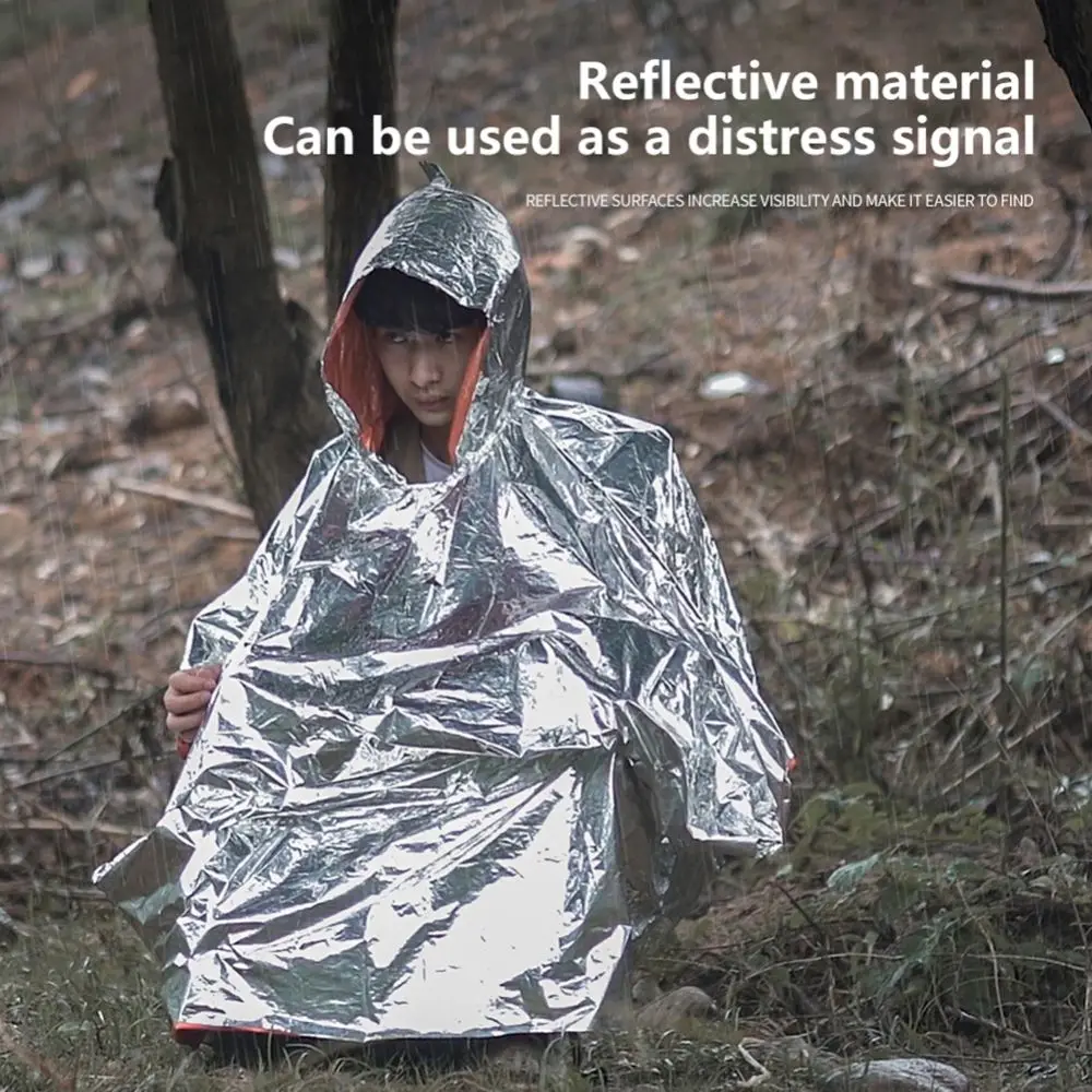 5: Ambos lados se pueden usar en la parte delantera para ser impermeables y resistentes al viento para mantener el calor, y el material reflectante en la parte posterior también se puede usar para primeros auxilios