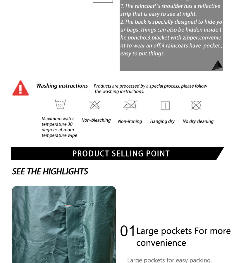 2. La parte posterior está especialmente diseñada para ocultar sus bolsos, las cosas también se pueden ocultar dentro del poncho.