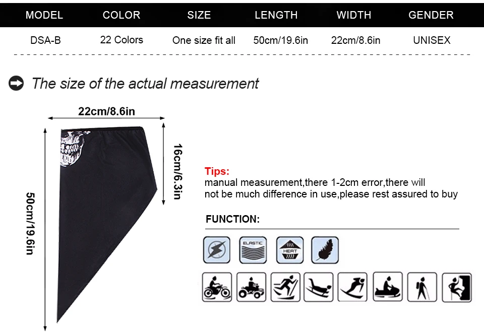 Debido a la medición manual, permite discrepancias de 1-2cm. El paquete incluye: 1 par de pañuelos faciales.