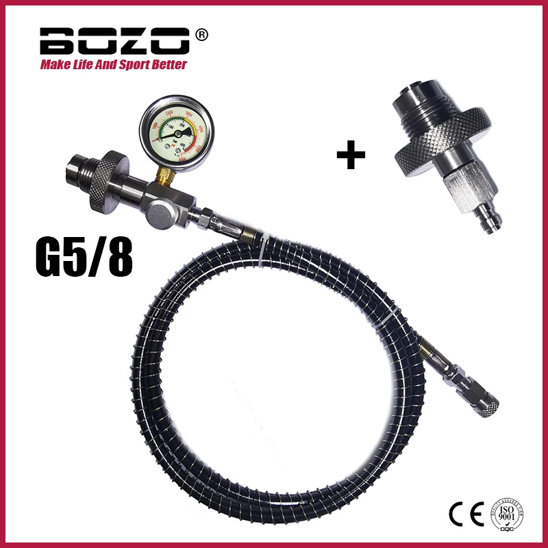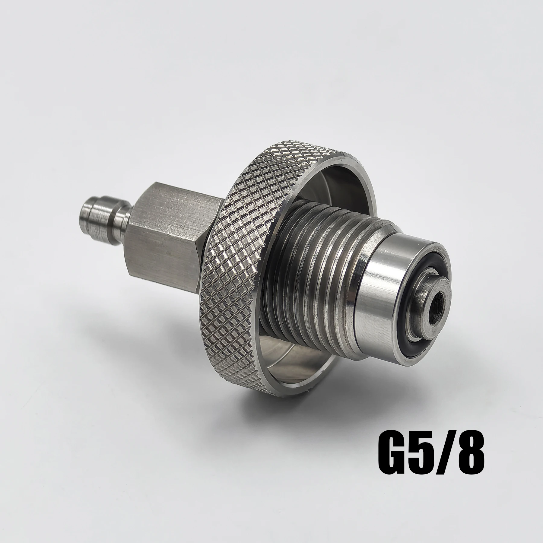 El extremo doble se adapta a roscas de válvula de tanque de buceo DIN estándar (G5/8-14).