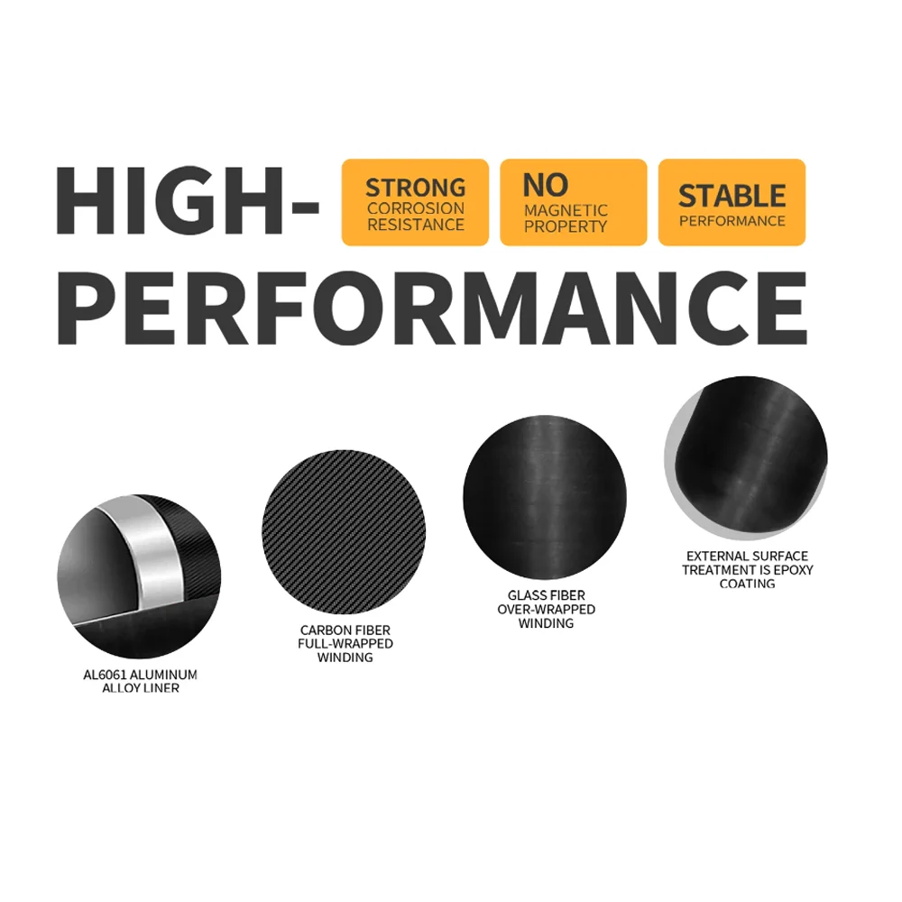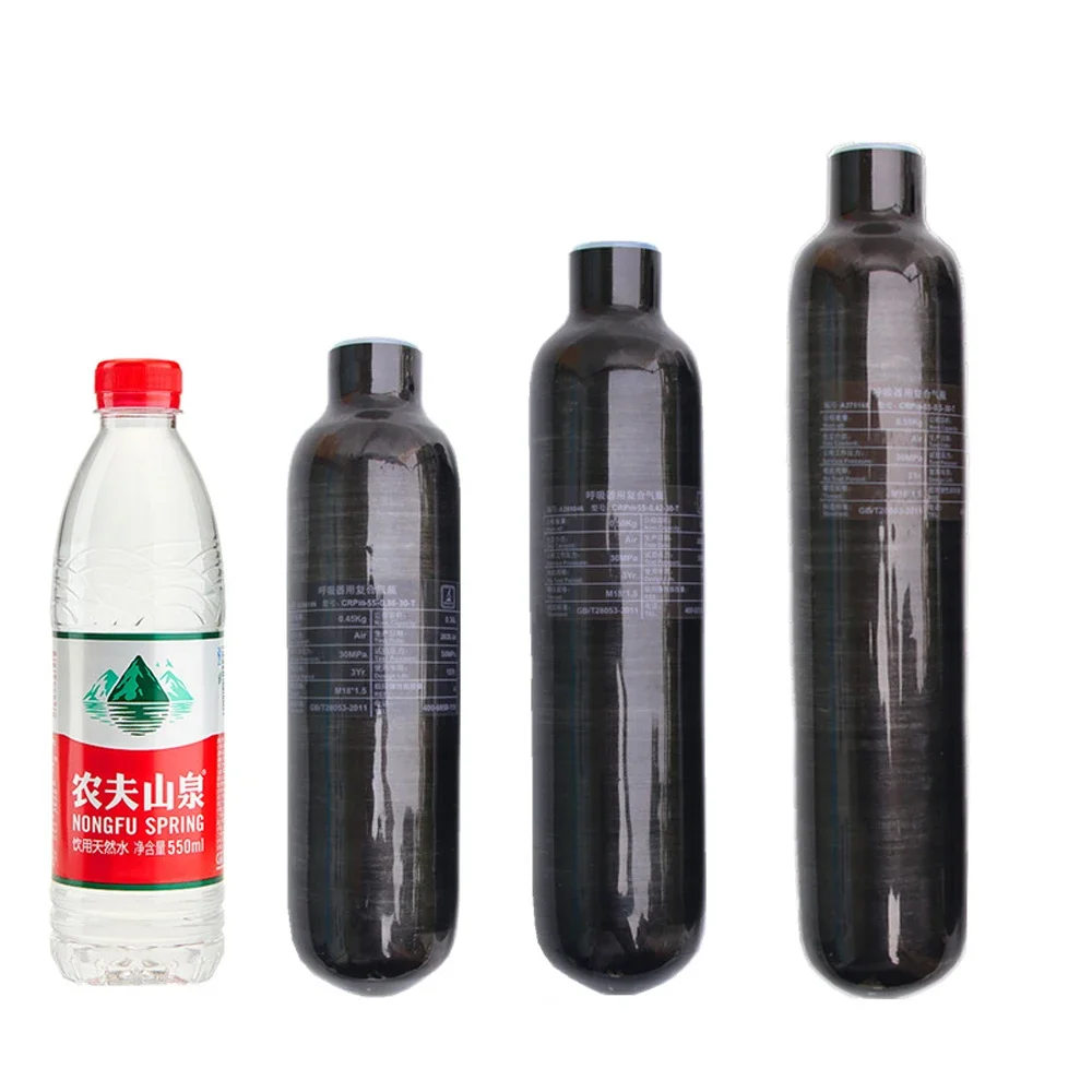 Cilindro de fibra de carbono 0.36L 0.42L 0.5L HPA Tanque 4500Psi 300Bar M18*1.5 Rosca recta