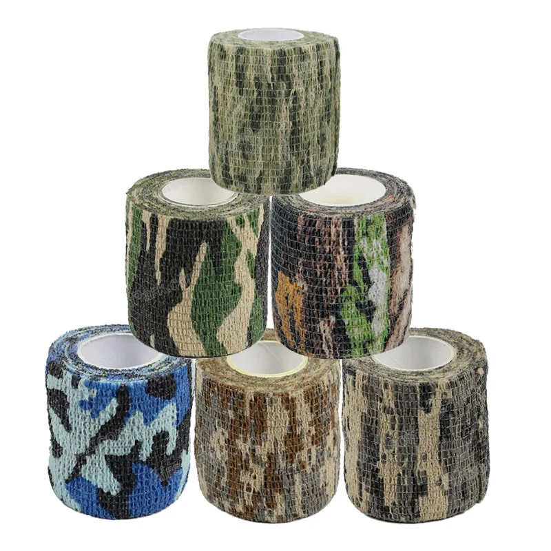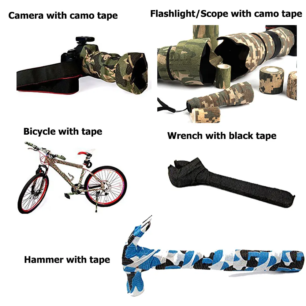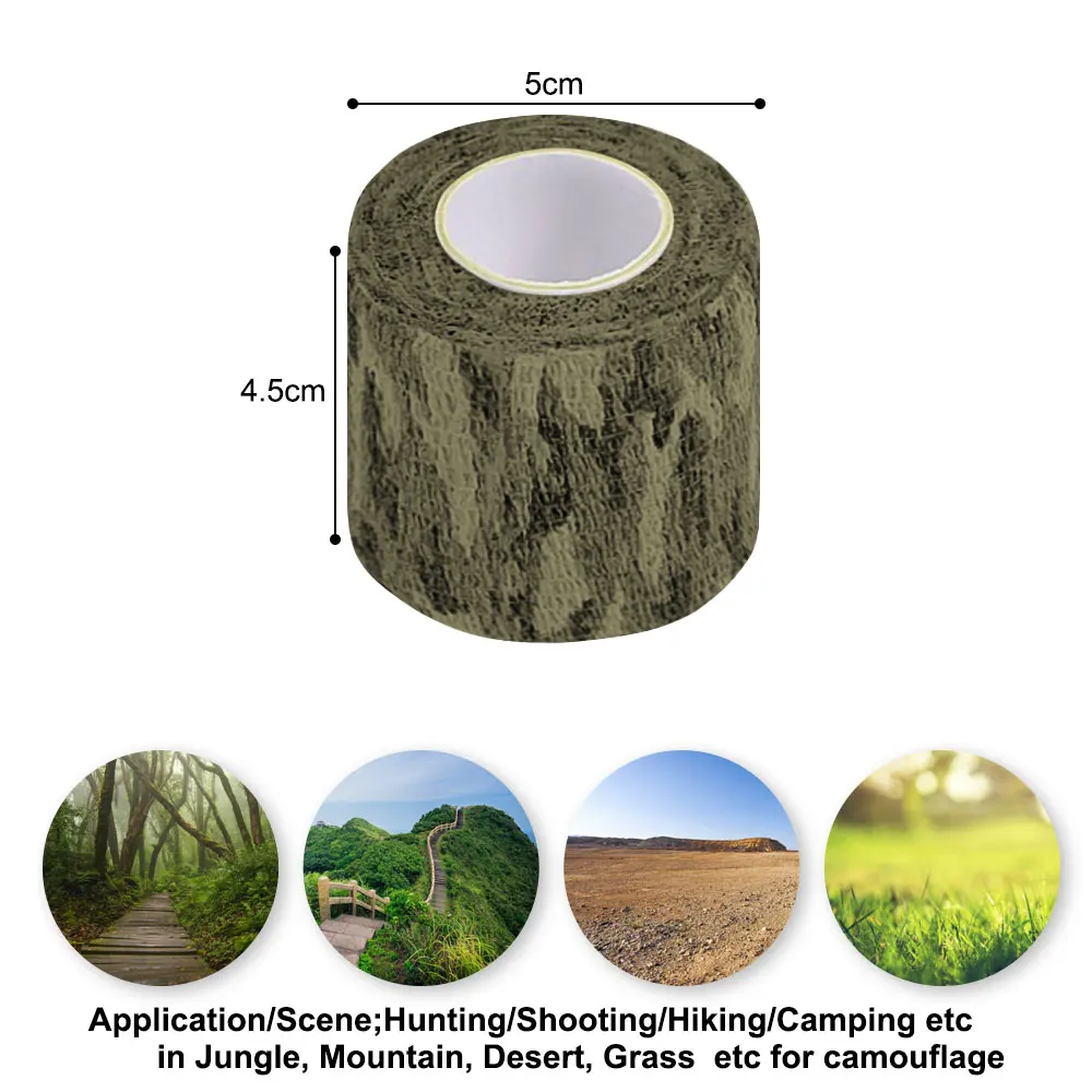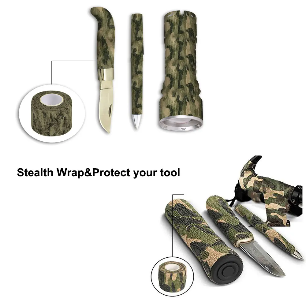 Cinta de camuflaje autoadhesiva para exteriores, vendaje elástico, envoltura protectora táctica de camuflaje no tejida para caza, rifle, linterna para pistola