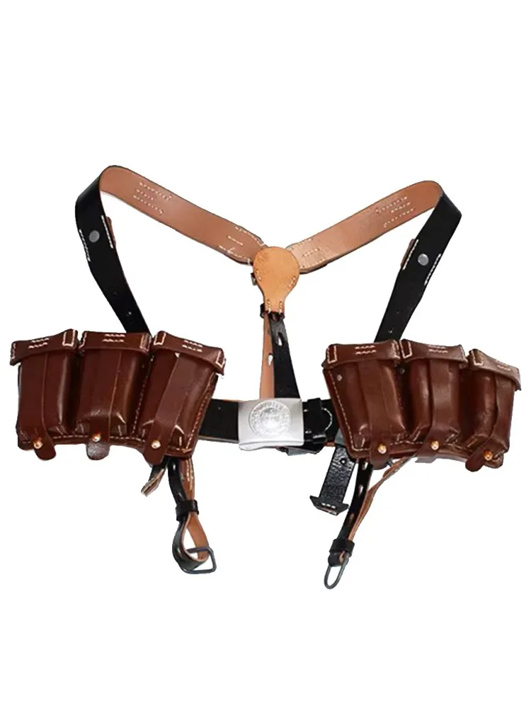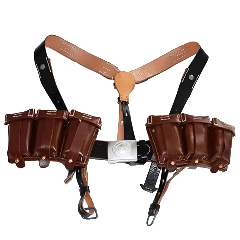 Cinturón alemán de la Segunda Guerra Mundial, correa en forma de Y de 98K, bolsa para revistas marrón, grupo de equipos de guerra, corcho de cinturón de 98K