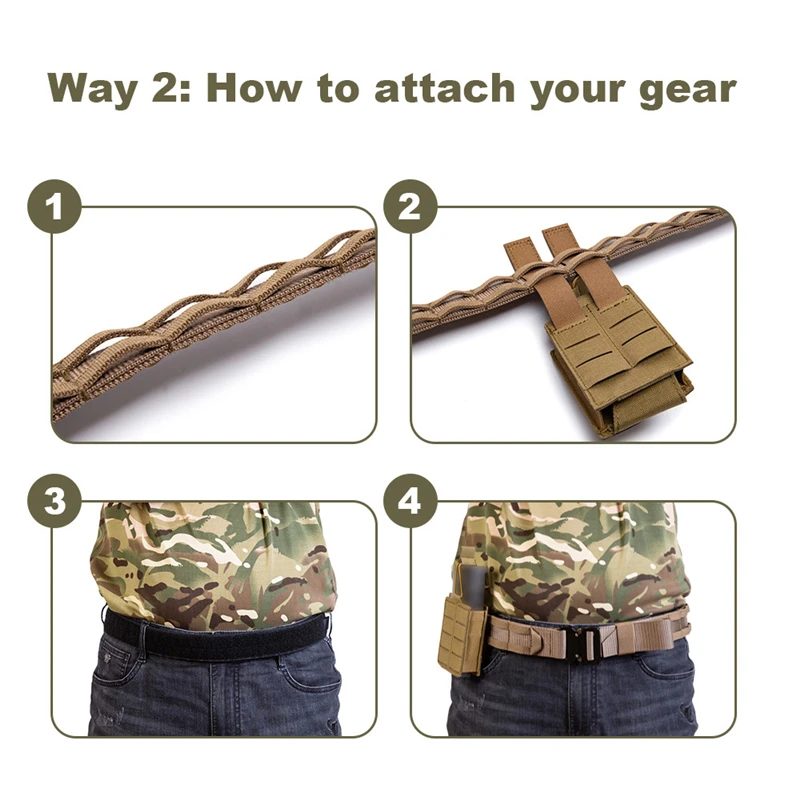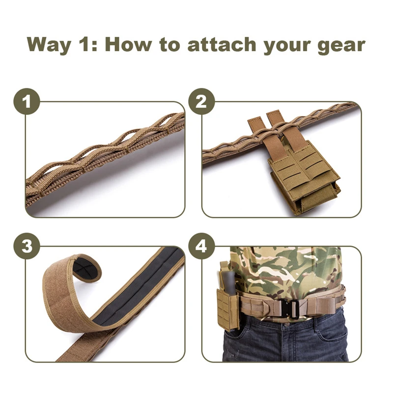[Métodos de uso múltiple] Cinturón MOLLE con cinturón interior: cinturón de sujeción en los pantalones y mejora del transporte de carga;Cinturón MOLLE con cinturón antideslizante: manténgalo cómodamente situado en tu cintura;Cinturón interior o cinturón antideslizante compatible con la mayoría de los otros cinturones con gancho lateral.