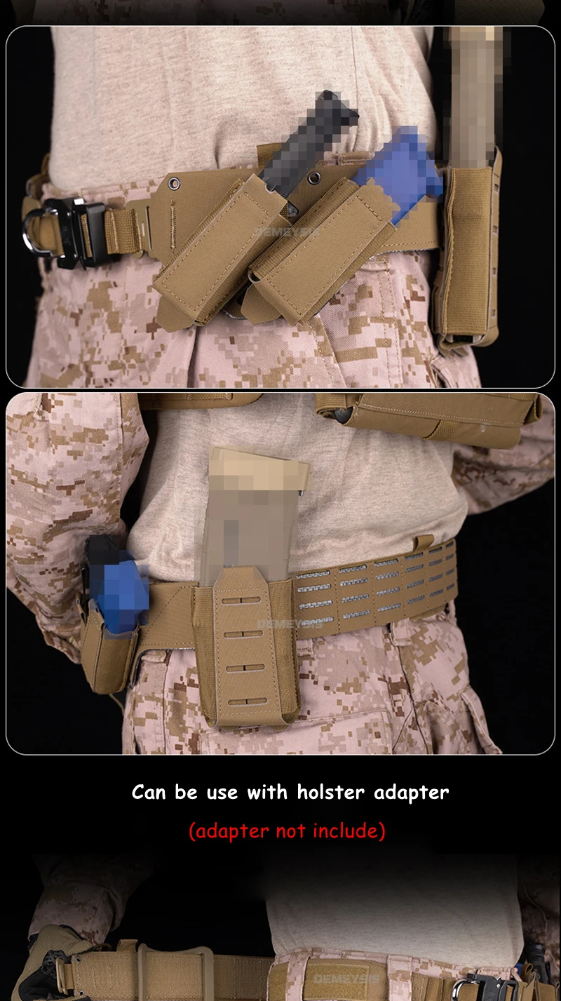 ●Design with tilted MOLLE system on the left, can be hang two small magazines pouch.