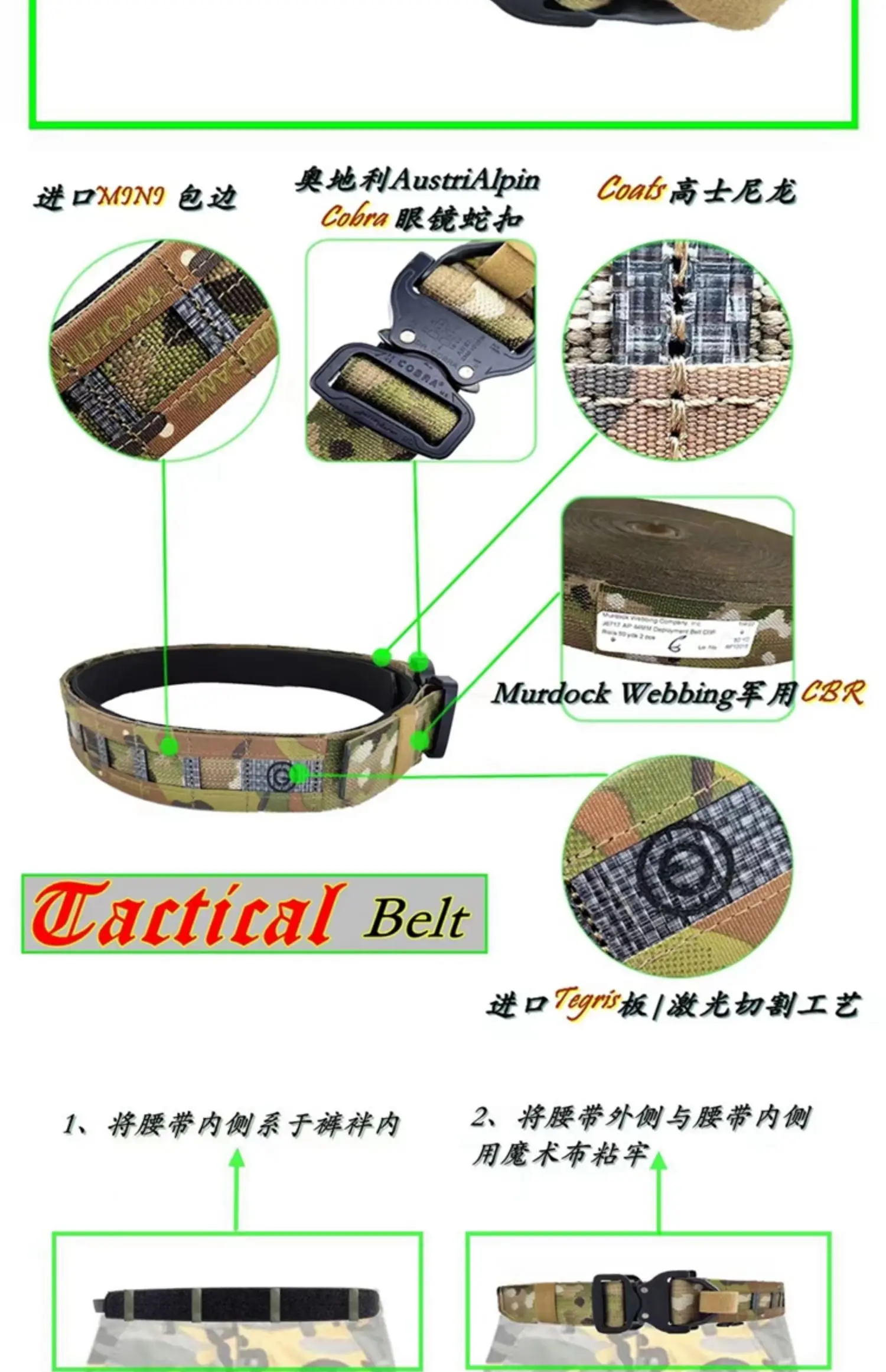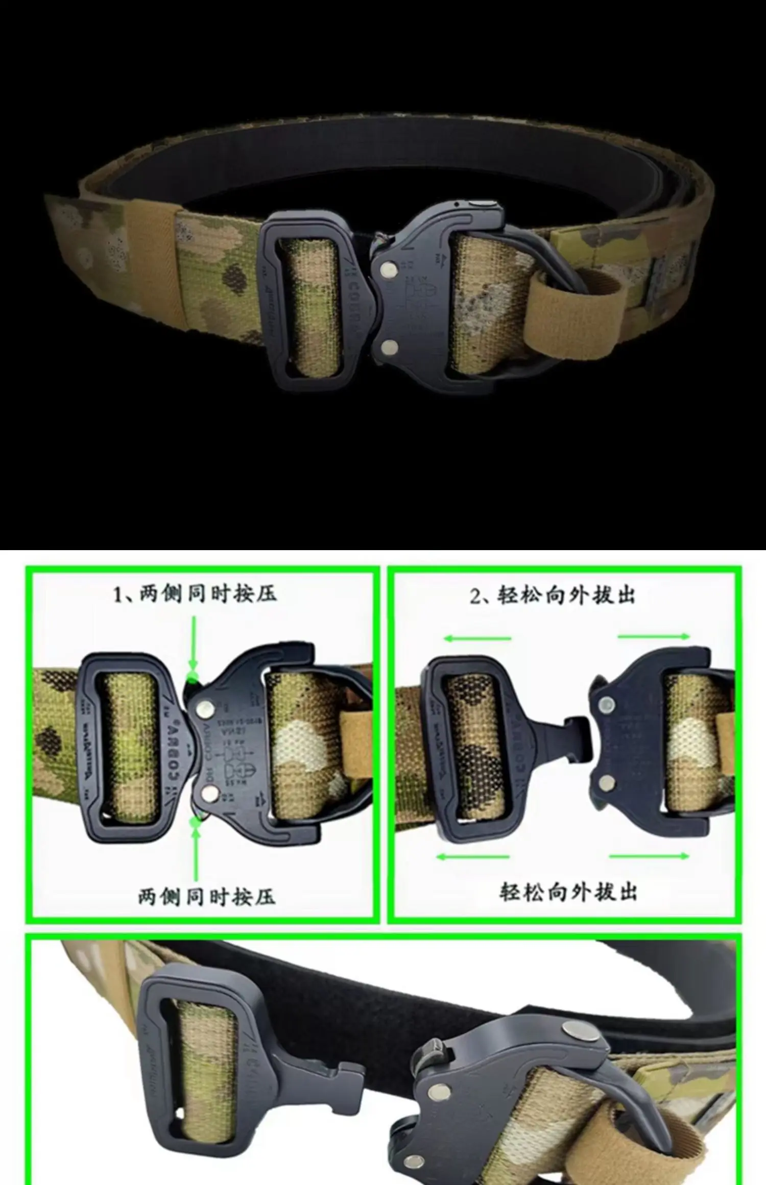 Cinturón de batalla (hebilla de metal austriaca de liberación rápida): cinturón rígido táctico de 45 mm con placa Tegris para airsoft, caza y servicio
