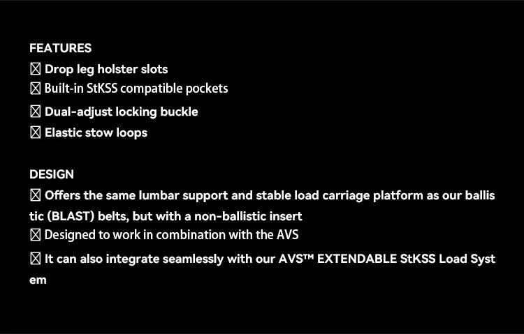 Cinturón de batalla de perfil bajo AVS | Sistema táctico MOLLE ligero para entrenamiento, deberes y exteriores