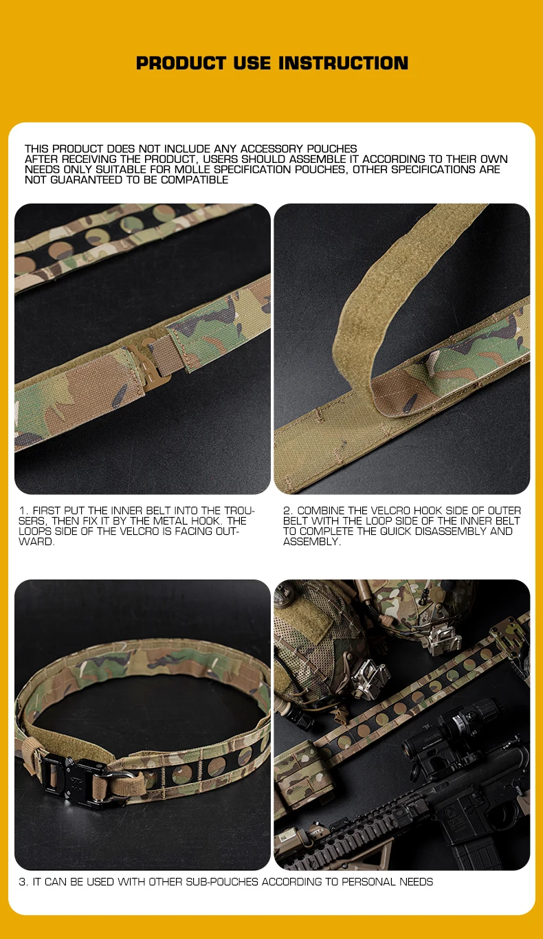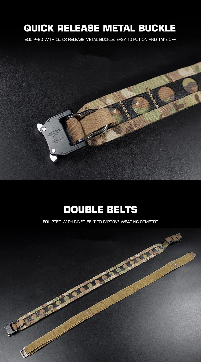Cinturón de batalla táctico 2 en 1, pretina de caza de tiro de doble capa, hebilla de Metal de liberación rápida, cinturones Molle de entrenamiento militar