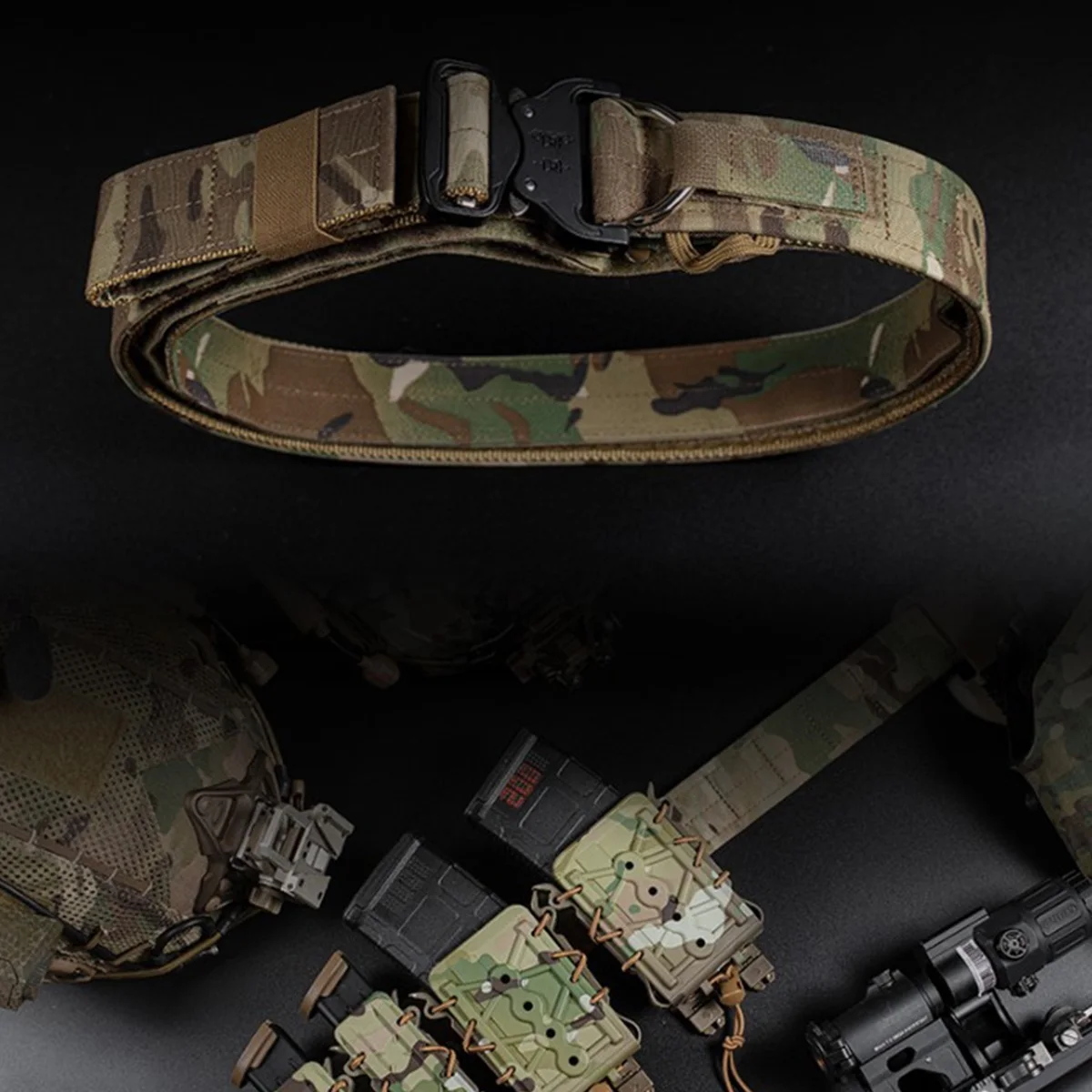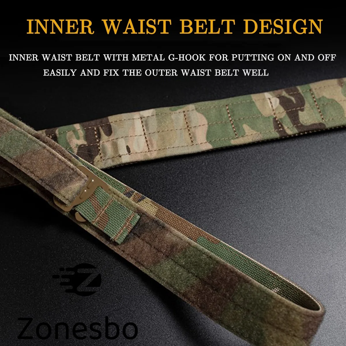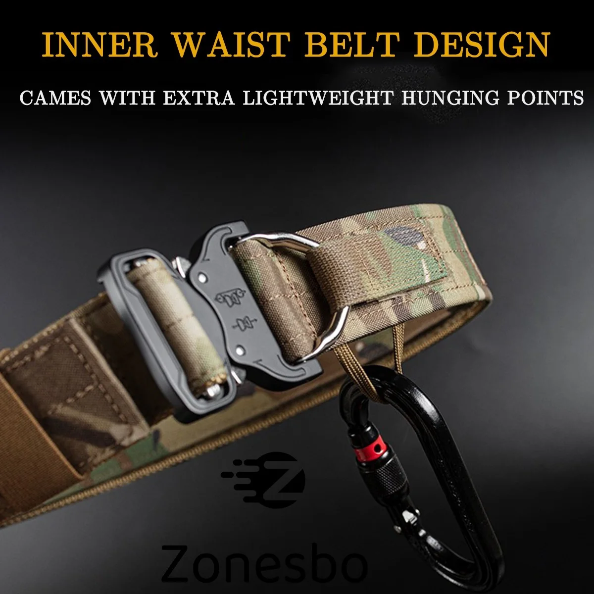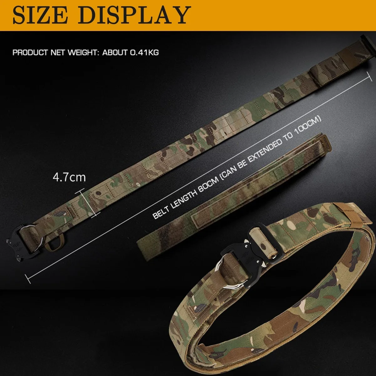 【CINTURÓN TÁCTICA 2 EN 1】 El cinturón táctico es dos sistemas de cinturón compuestos por un cinturón exterior de 2'' y un cinturón interior de 1,75''.Se combinan a través del sistema de gancho y bucle.El cinturón exterior se puede unir fácilmente con el cinturón interior mediante gancho y bucle.También se pueden utilizar por separado como diferentes sistemas de cinturón.