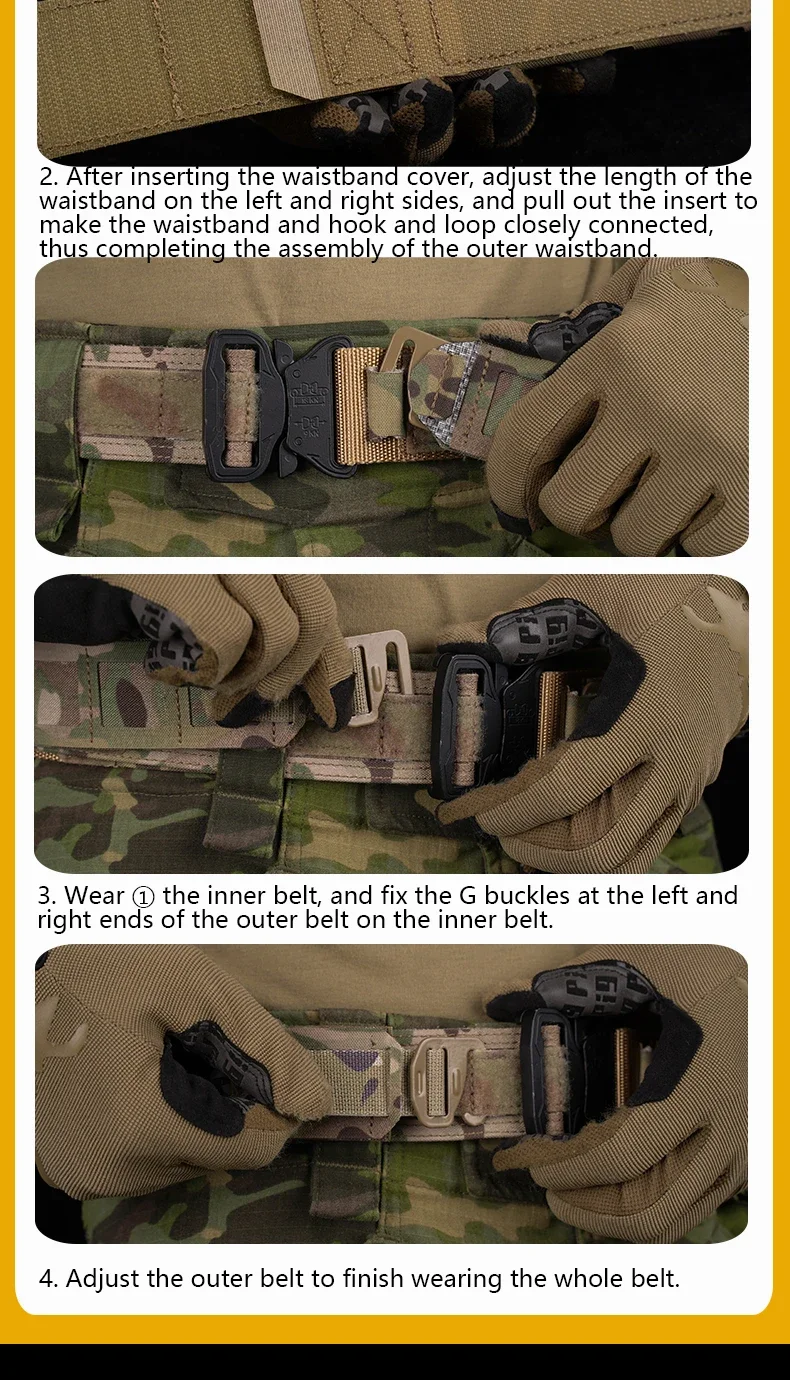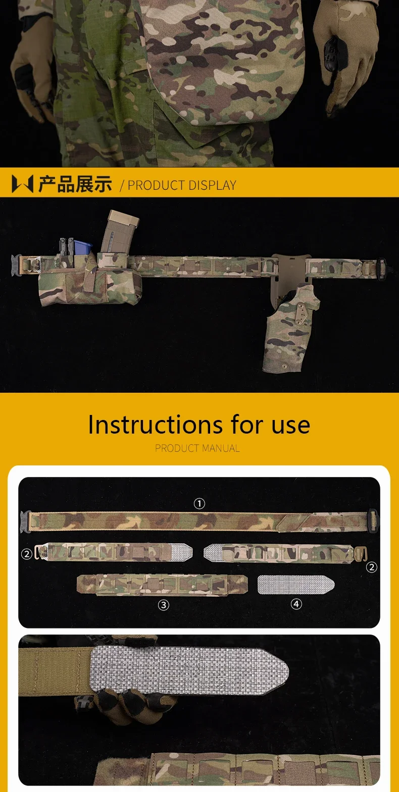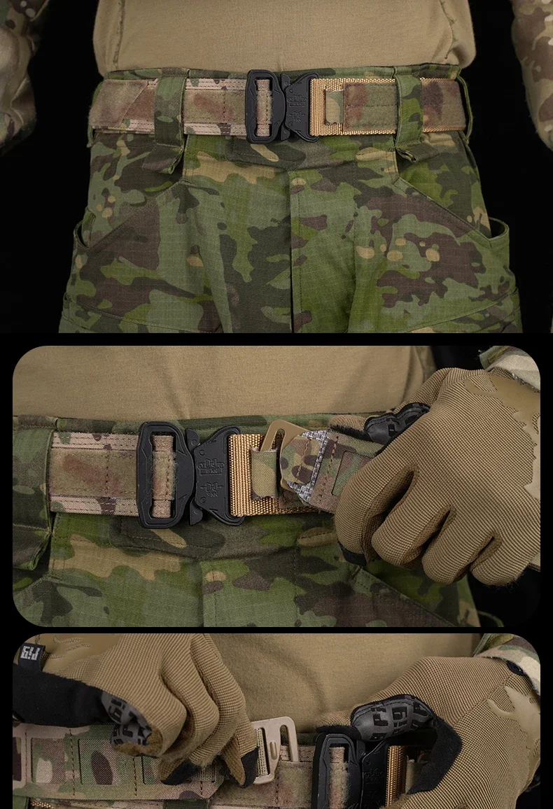 Cinturón de camuflaje ligero táctico, montaje MOLLE, hebilla de Metal de liberación rápida, cinturón doble interior y exterior