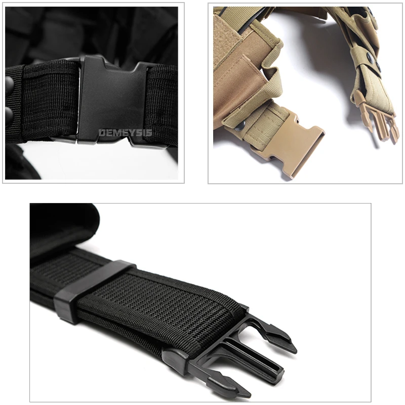 ● Con diseño de gancho, bucle y hebilla, el cinturón táctico es fácil de transportar, almacenar e instalar, y se puede desbloquear y liberar rápidamente para hacer frente a varios.