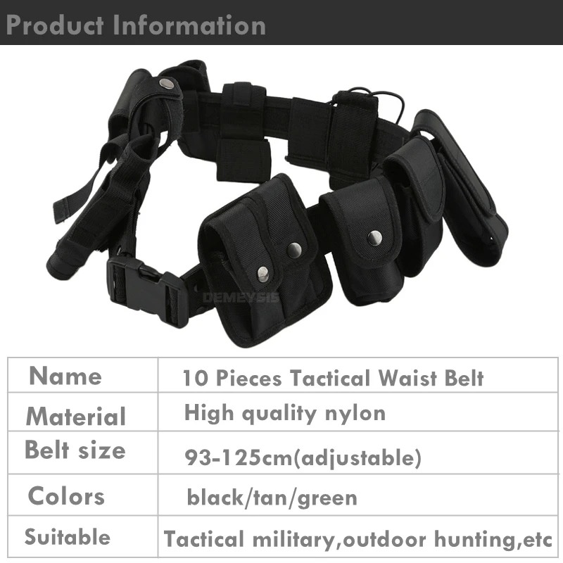 ● Cinturón Táctico 10 en 1. Cinturón de seguridad ajustable para tareas de aplicación, 9 bolsas de componentes multifuncionales diferentes incorporadas, utilizando materiales de alta calidad, resistentes, duraderas, resistentes al desgaste y resistentes al desgarro.