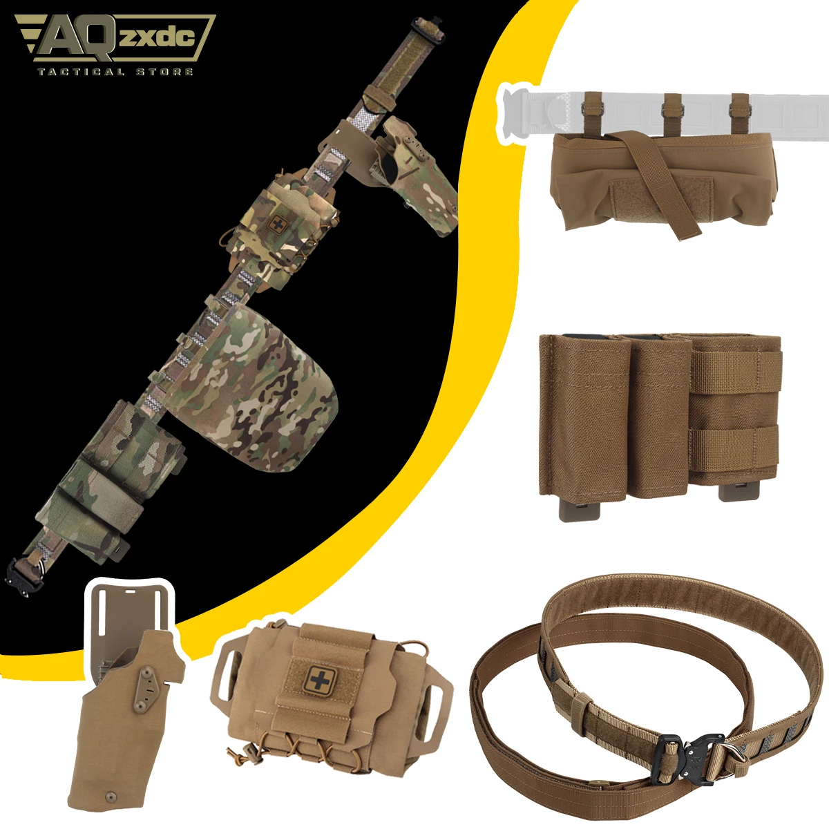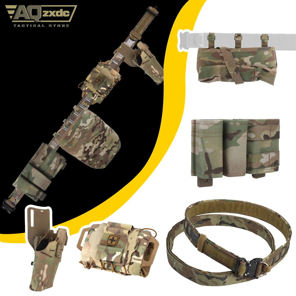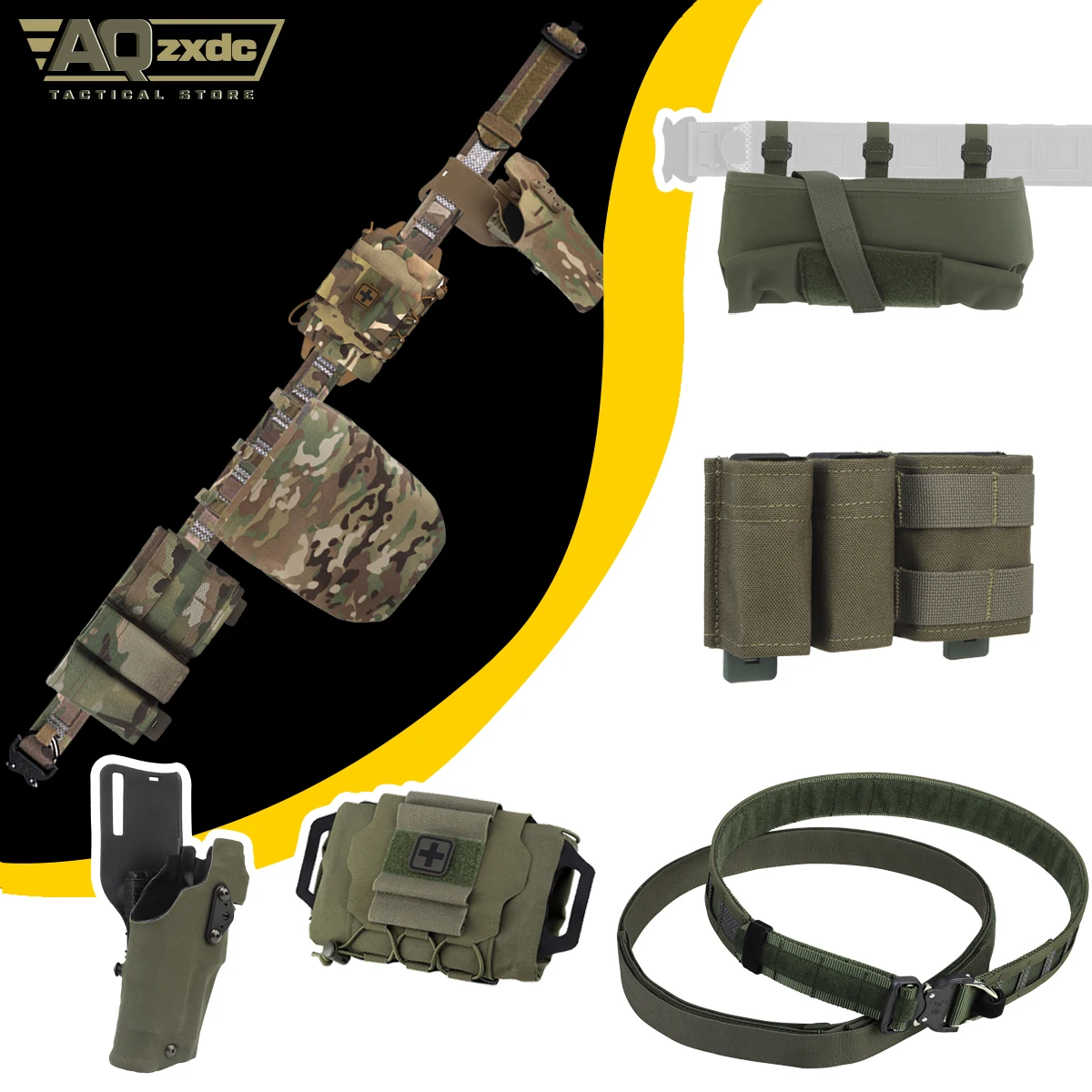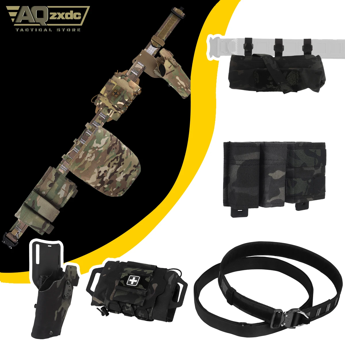 Cinturón de caza al aire libre con funda de dibujo rápido ALS, bolsa Triple Mag, bolsa médica IFAK, bolsa plegable para Paintball Airsoft