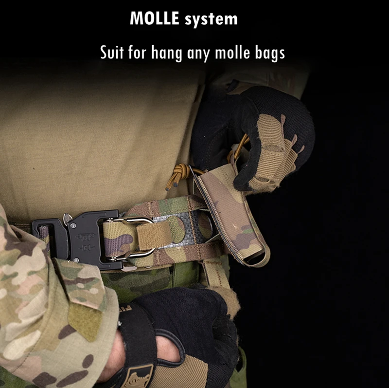 ●Este cinturón le permite conectar bolsas de almacenamiento adicionales, paquetes médicos, equipo táctico y cualquier otra cosa que pueda necesitar.
