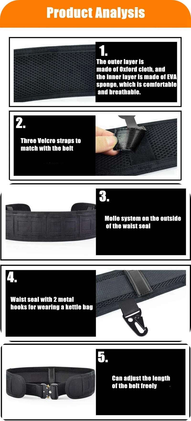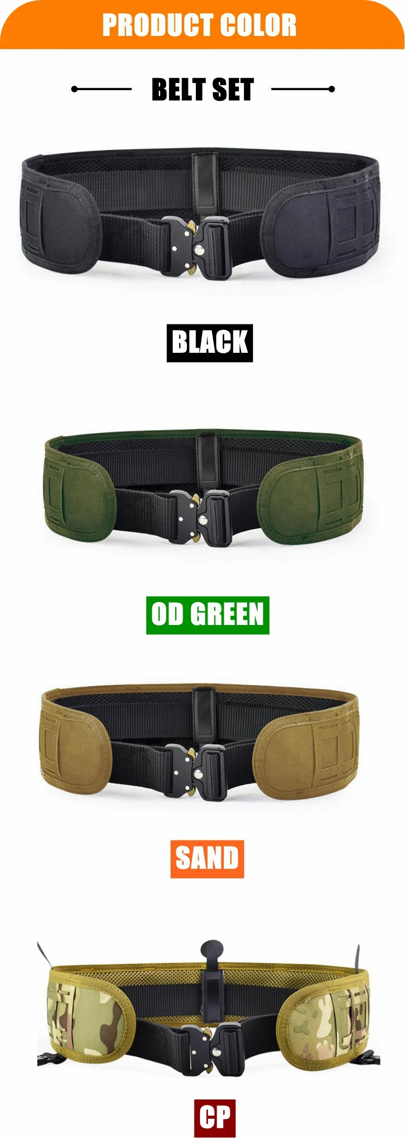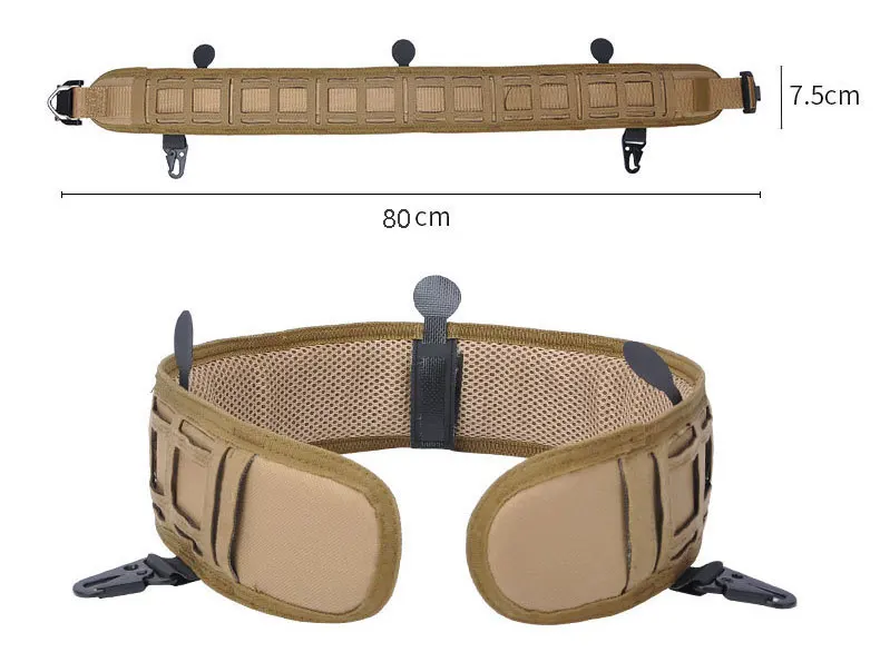 Características: * Proporciona una plataforma compatible con MOLLE alrededor de la cintura, puede cargar diferentes bolsas de accesorios * Talla única, cambia la longitud según los diferentes tipos de espera, la longitud más larga es de alrededor de 105cm. * Con hebilla fuerte, liberación rápida y fácil de usar * Dos hebillas de metal de cinturón se pueden utilizar junto con chaleco táctico * Transpirable y cómodo: acolchado para mayor comodidad con un interior de malla para transpirabilidad y flexibilidad. * Color: negro, arena, Verde * Tamaño: 80*7,5 cm * Peso: aproximadamente 0,35 kg El paquete incluye: 1 ud. * cinturón de cintura