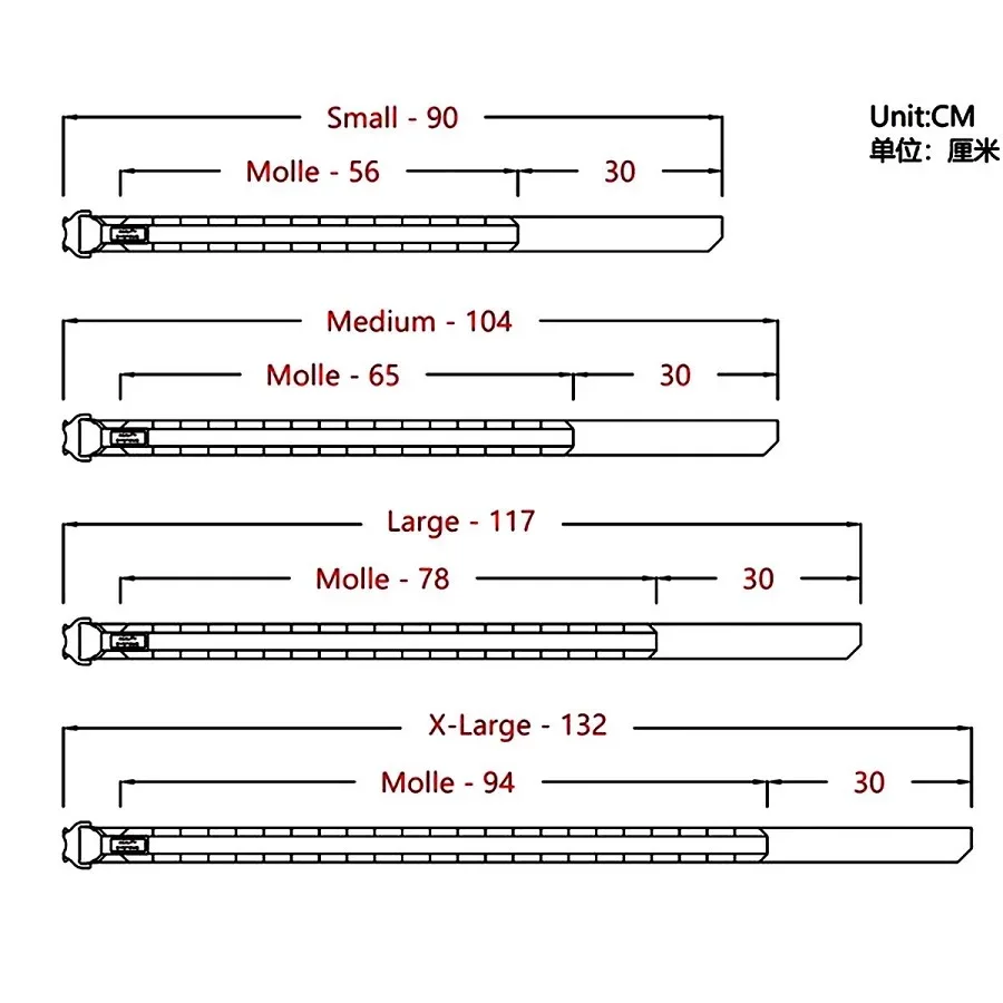 L: longitud total 117 cm, longitud MOLLE 78 cm