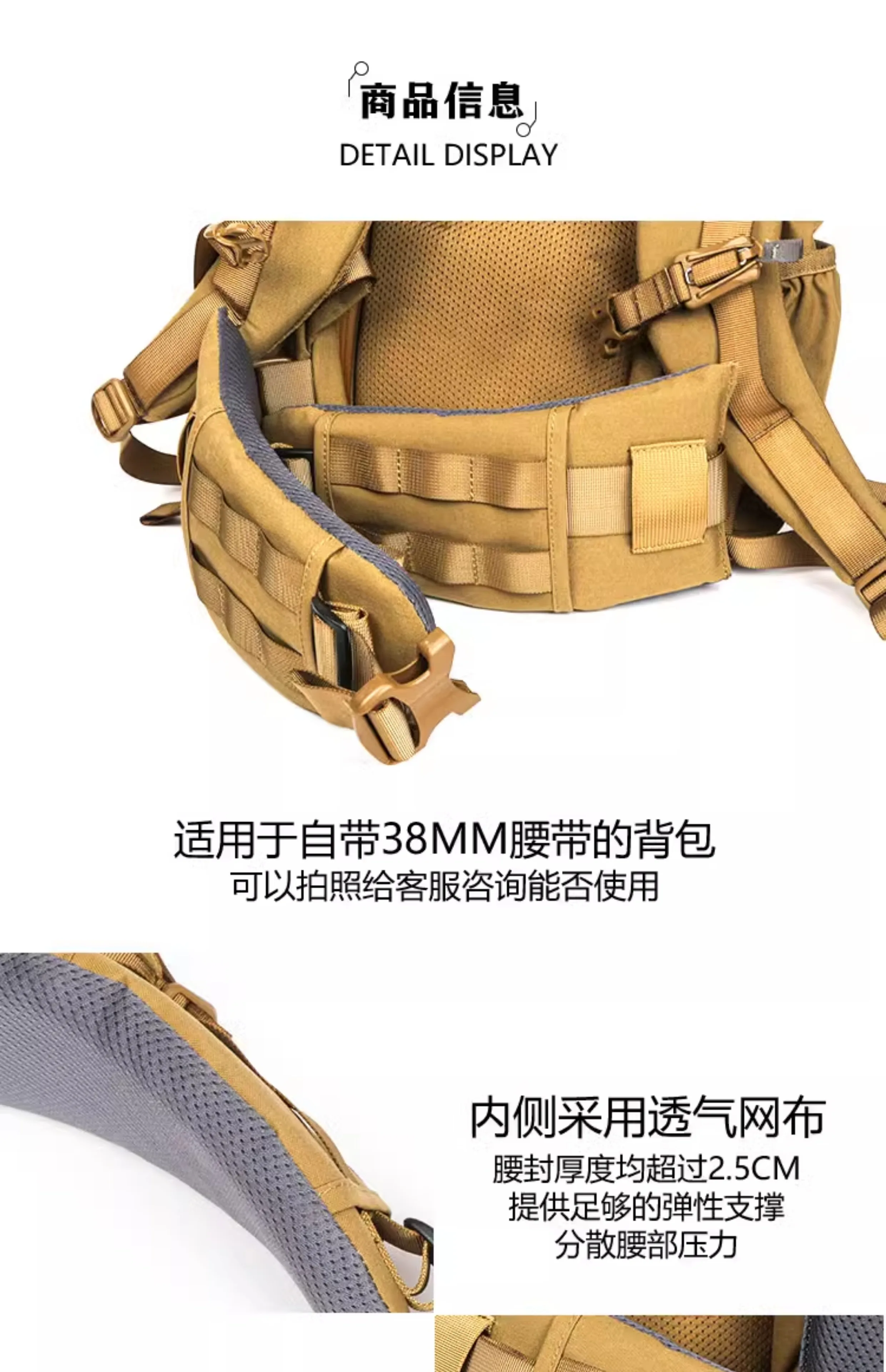 Cinturón de descompresión Molle para mochila táctica, accesorio de extensión de correas, sellado de cintura y relleno de accesorios de apilamiento