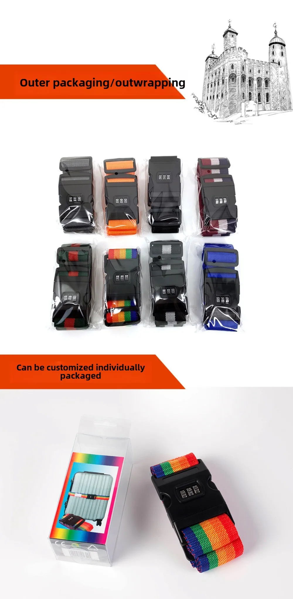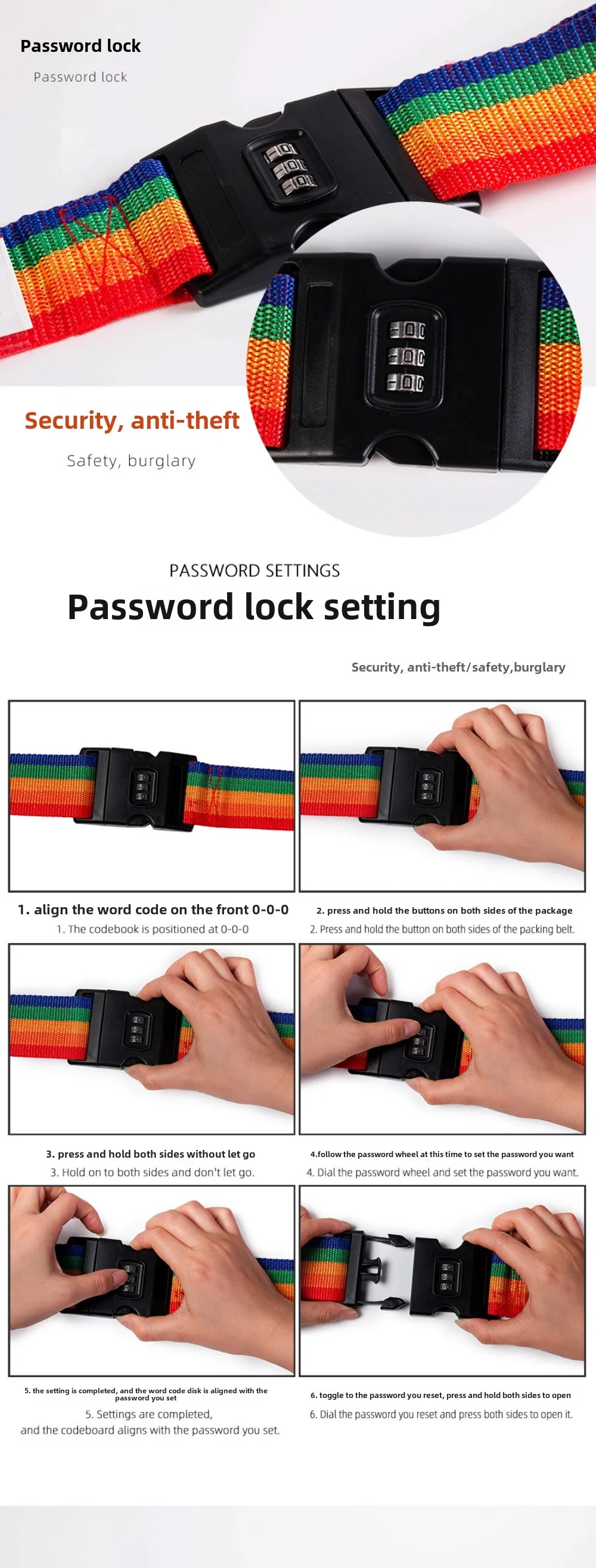 Cinturón de equipaje de 1,7 m, correa ajustable para maleta de equipaje de viaje con cerradura codificada, correa de cinturón segura con cerradura segura
